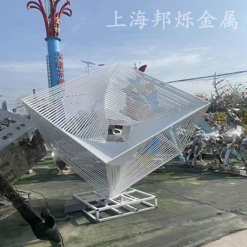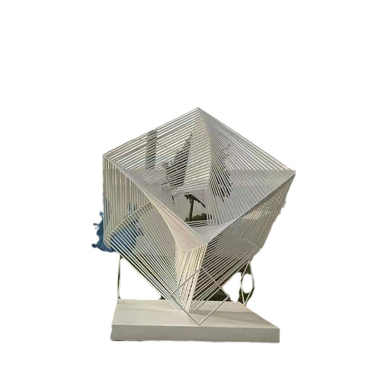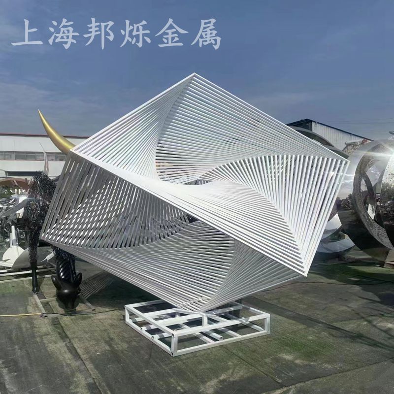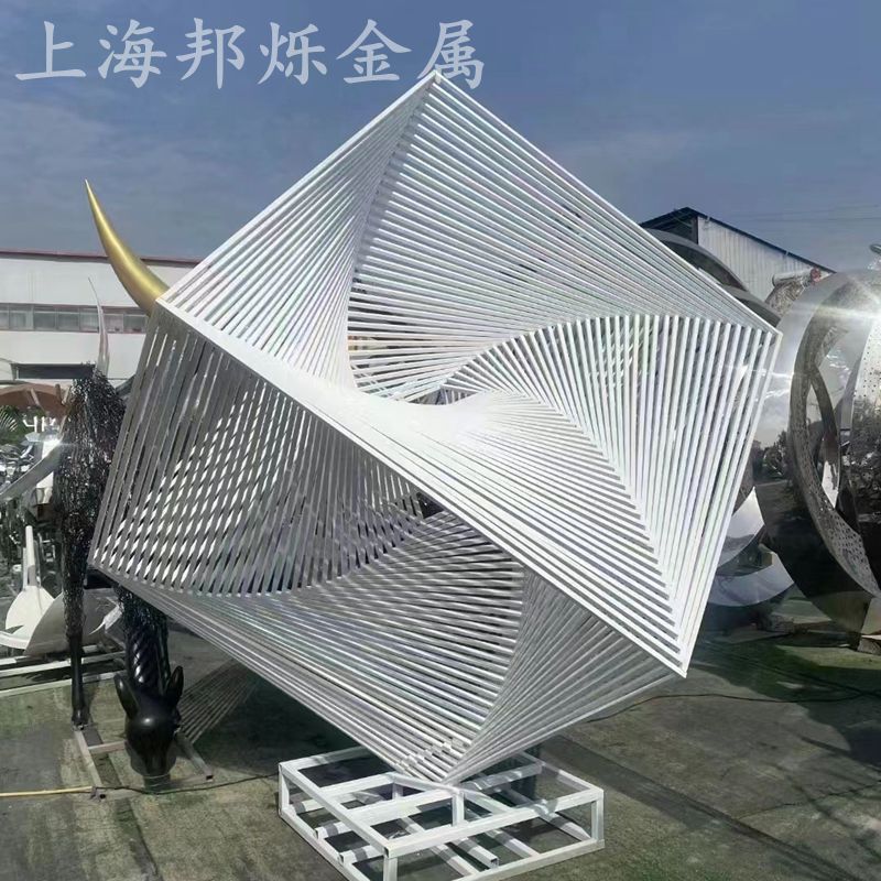 Производство стальных труб, квадратная форма скульптуры, сварка, полировка и другие процессы, выполненные по индивидуальному заказу производителем скульптур из нержавеющей стали в Шанхае.