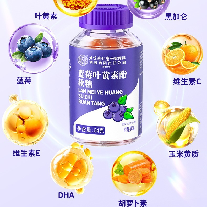 Пекинская фабрика Тонгрентанг использует жевательные конфеты с лютеином, таблетки лютеина с DHA и гелевые конфеты с лютеином.