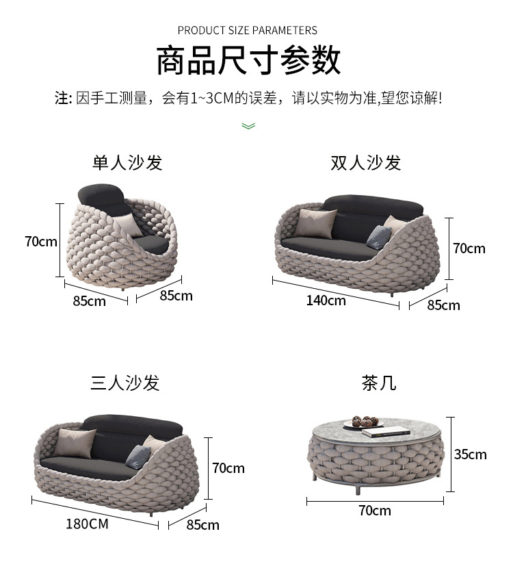 Односпальный диван 85*85*70см; Двойной диван 140*85*70см; Трехместный диван 180*85*70см; журнальный столик; 2 одиночный + журнальный столик; 2 одинарные + двойное сиденье + журнальный столик; 2 одиночные + три человека + журнальный столик; Односпальный диван + журнальный столик; Двойной диван + журнальный столик; Трехместный диван + журнальный столик