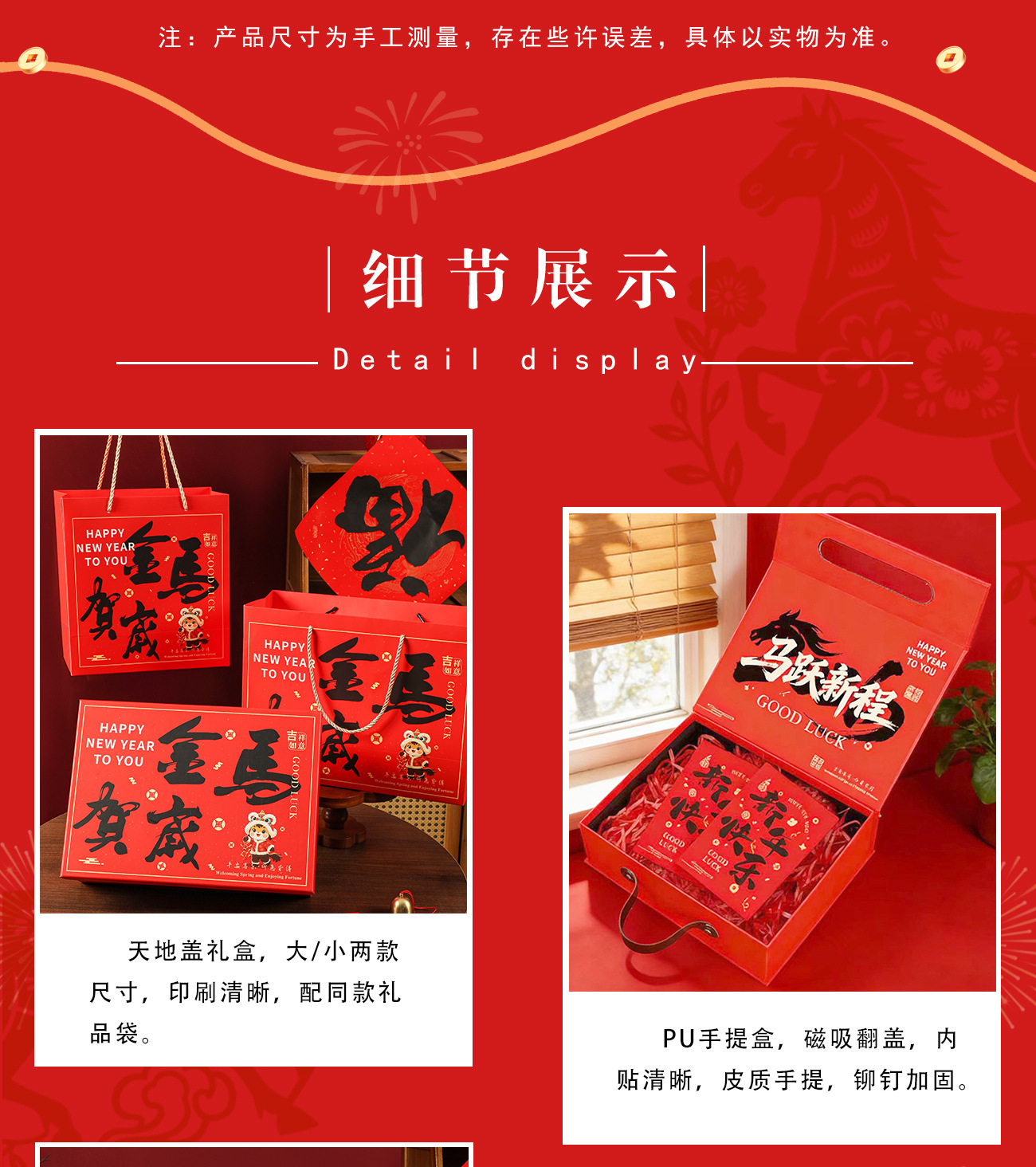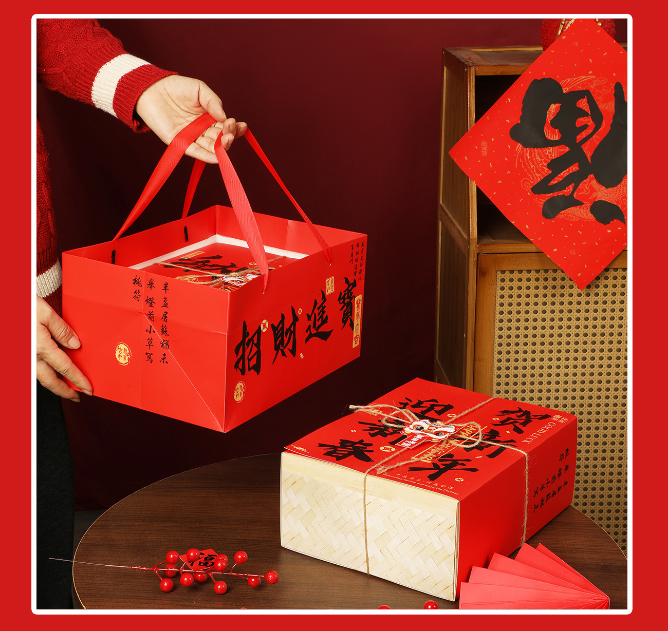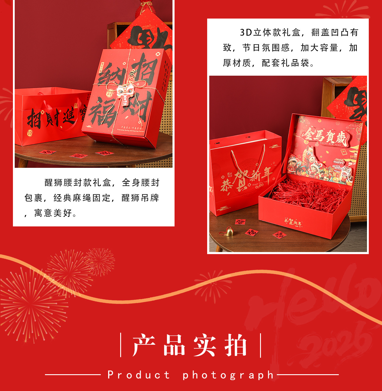 Небо и Земля. Маленькая коробка (20x20x10 см); Новый год; Небо и Земля, большая крышка (29x21x11 см); Новый год; Подходящая коробка большого размера (28x22x10 см); Новый год; Трёхмерная коробка большого размера (32x27x11 см); Новый год; Поясная печать «Танец льва» - большая (29x21x11 см); Новый год; Интерьерный набор из 2 предметов (рафия + поздравительная открытка); Новый год; Открытки с пожеланиями (2 штуки); Новый год