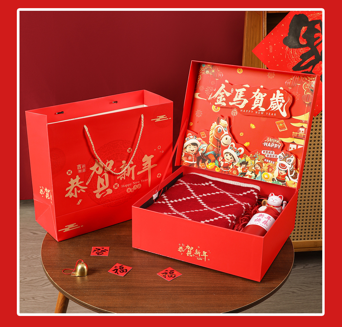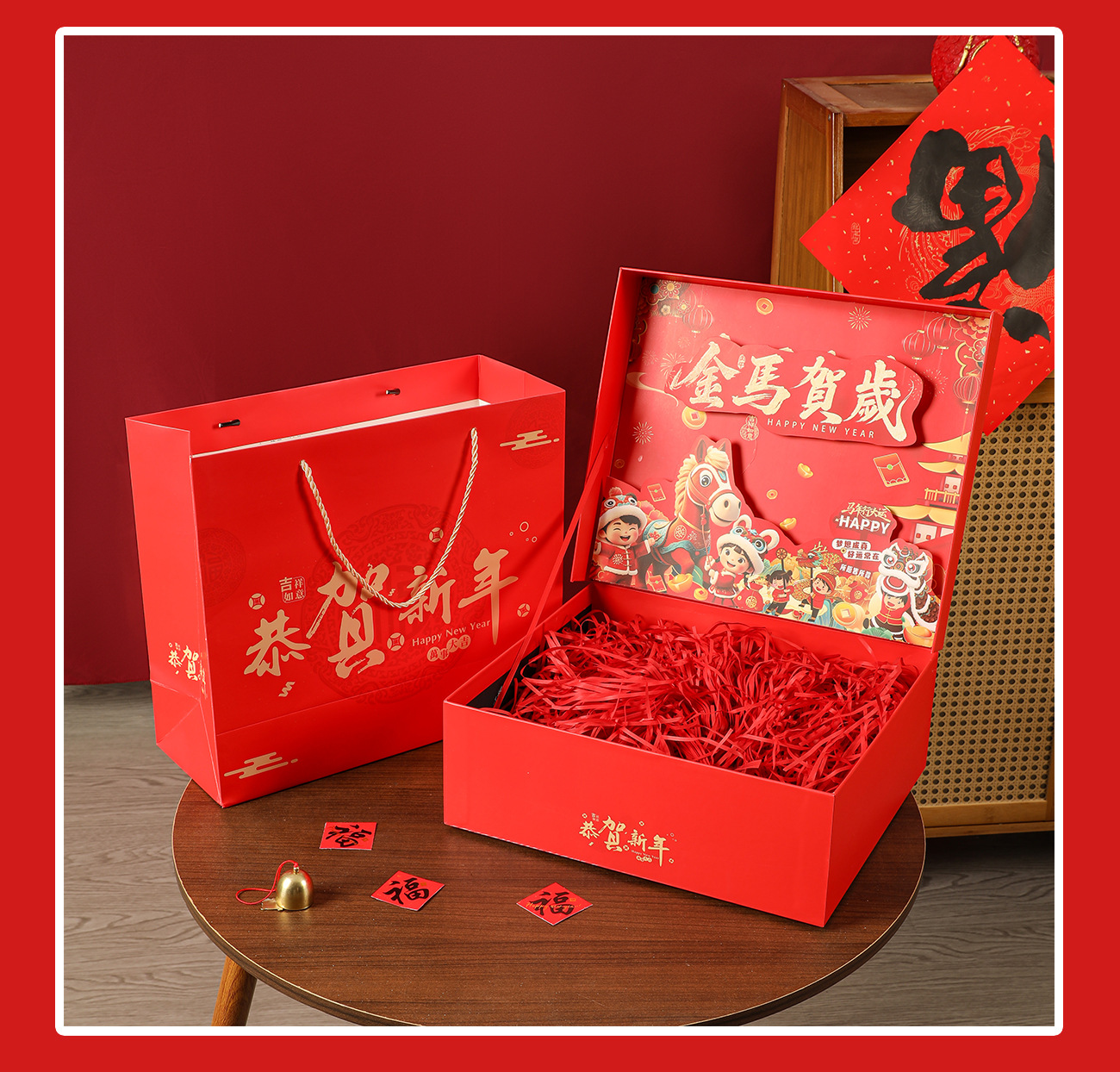 Подарочная коробка к Новому году 2026 в наличии, упаковка для новогодних подарков, красная подарочная коробка «Год Лошади», пустая коробка, коробка для чашек и платков