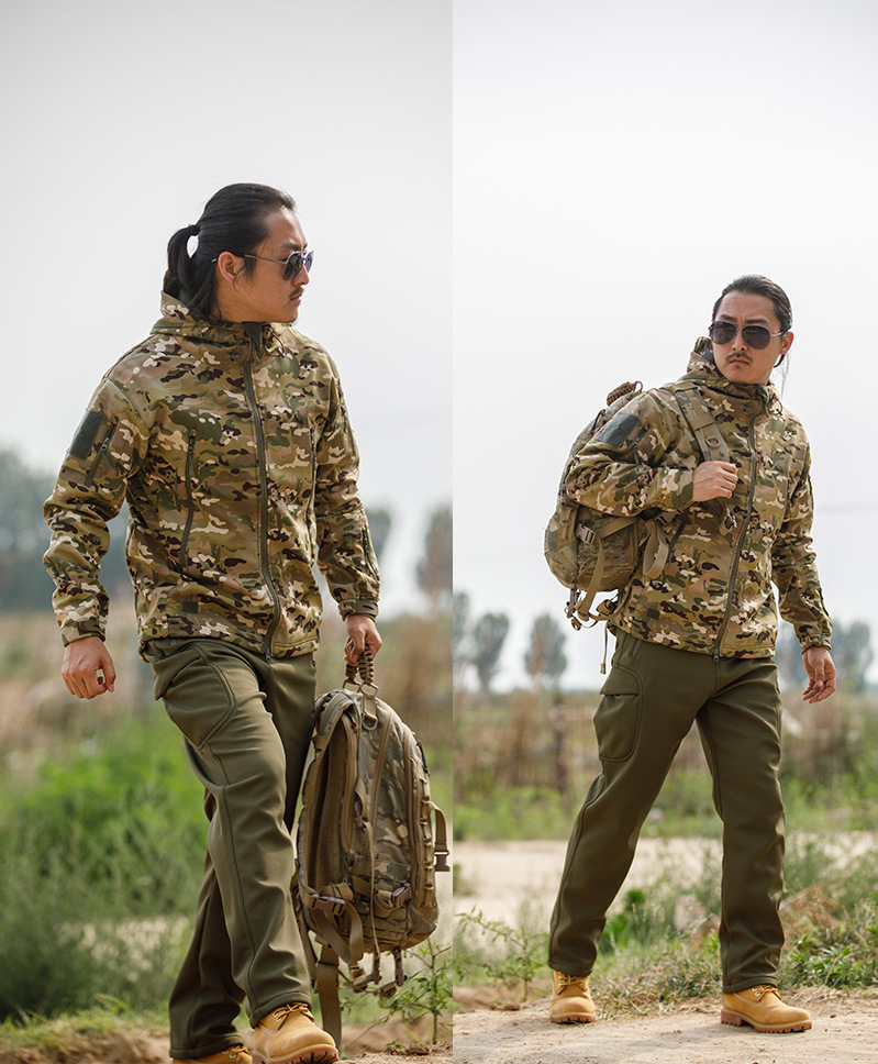 Куртка из мягкой оболочки из кожи акулы, камуфляжная куртка, флисовая утолщенная тактическая куртка в стиле милитари, куртка с капюшоном для альпинизма, jackettad