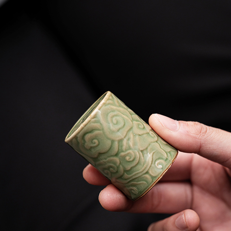 Ретро бамбуковая зеленая глазурь-Крышка Xiangyun