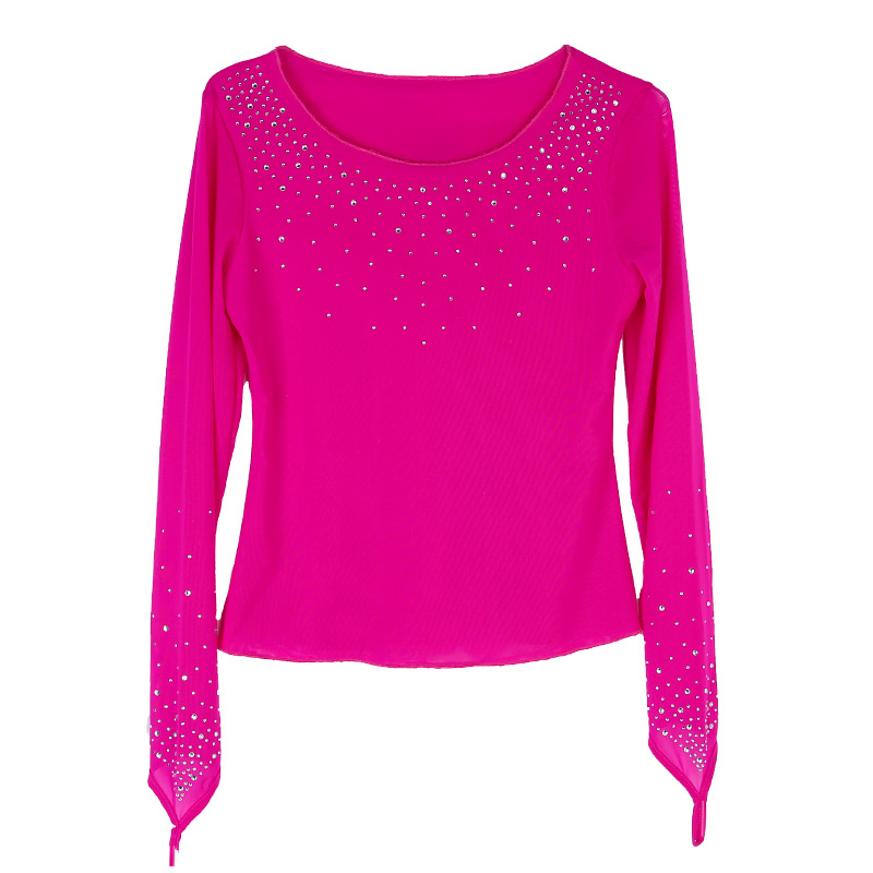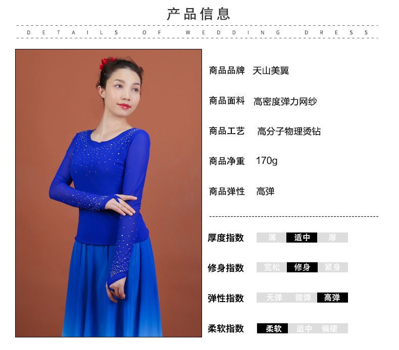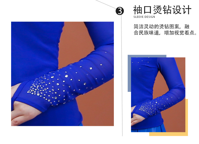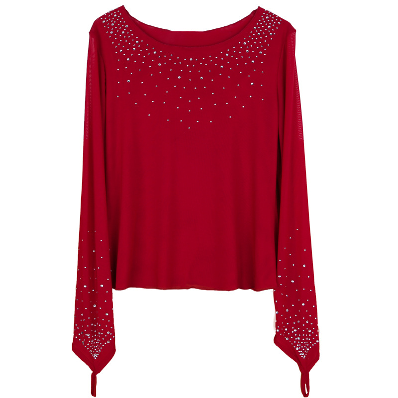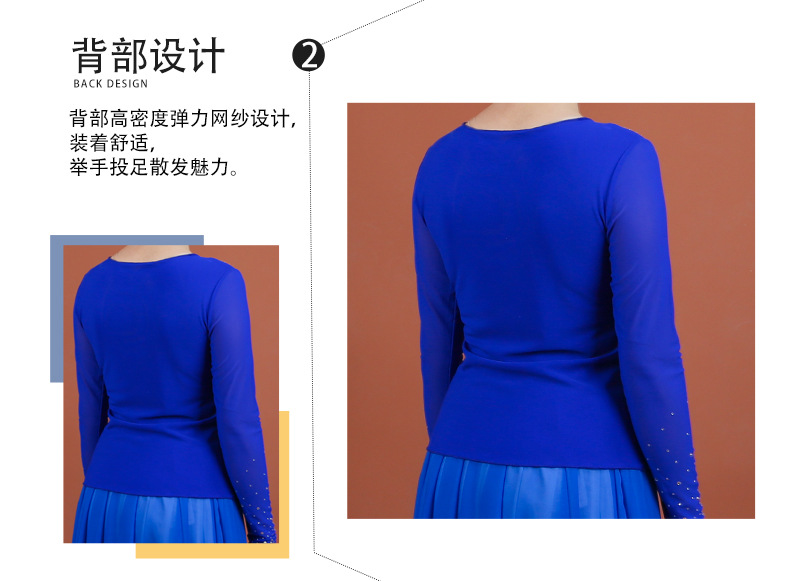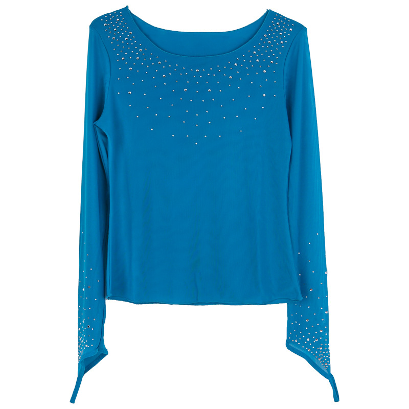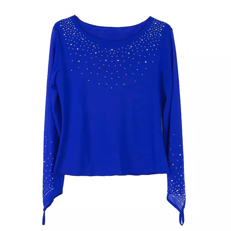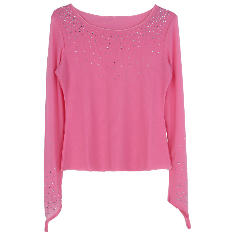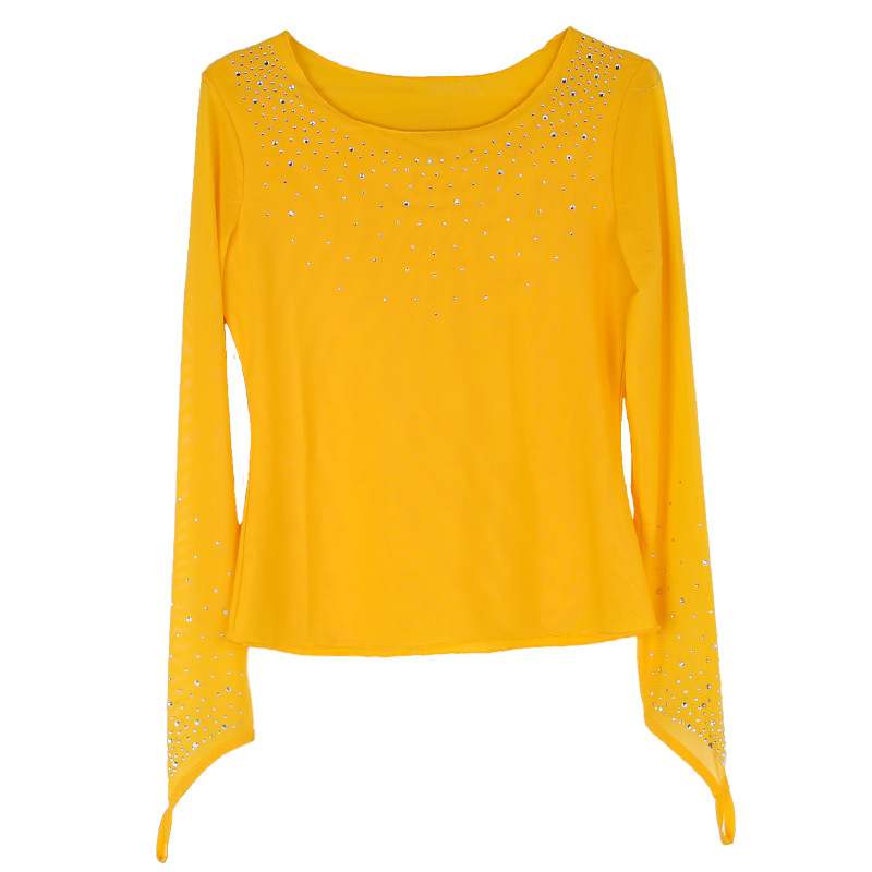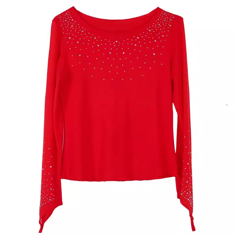 Танцевальный костюм в этническом стиле из Синьцзяна, для базовых тренировок, из сетчатой ткани, черная блузка с отверстиями для пальцев, сетчатый топ с камнями, в китайском стиле