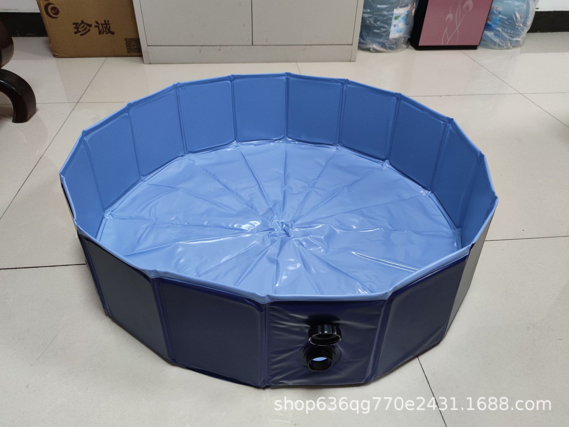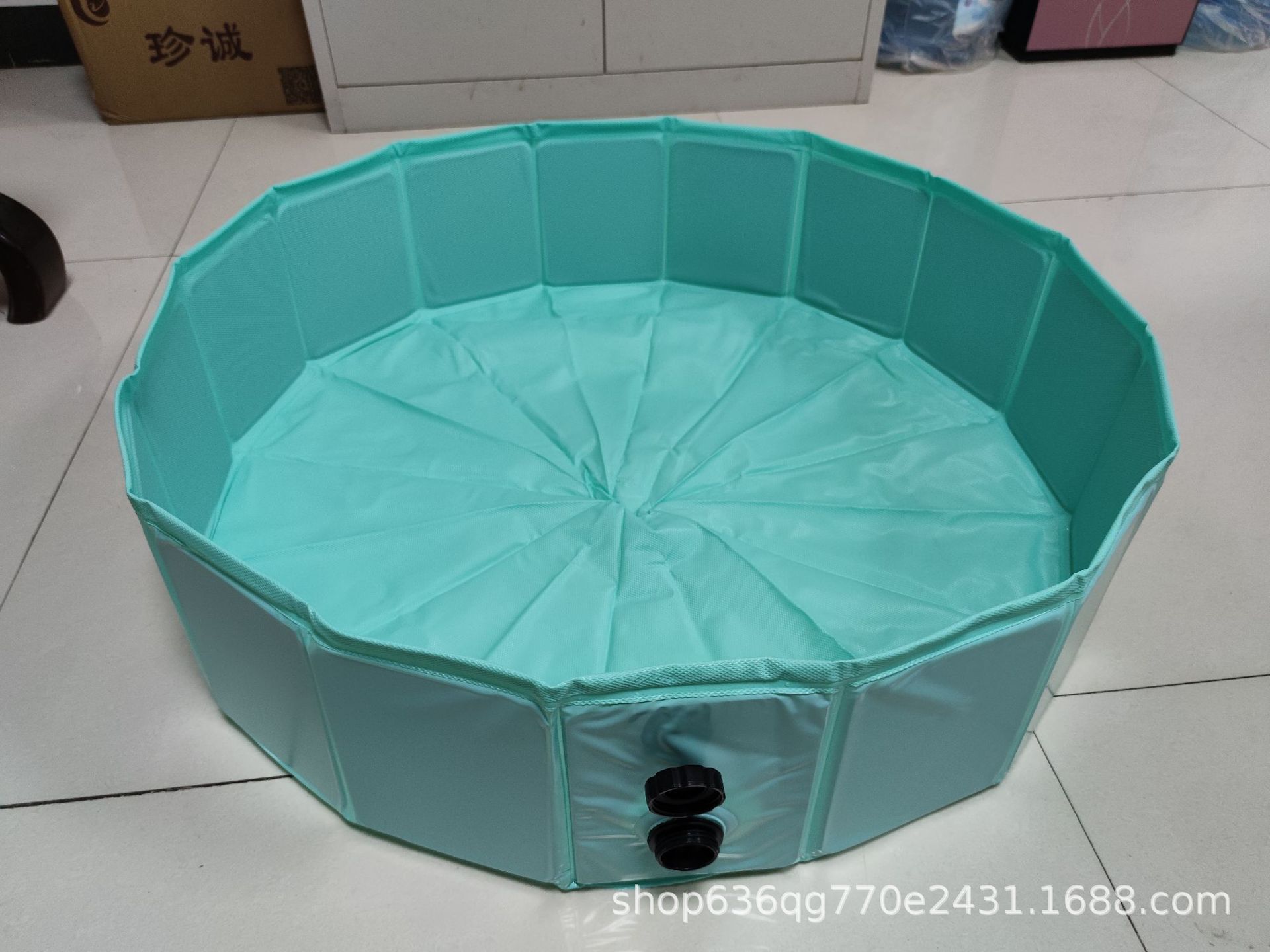 宠物水池目前生产主要有两种材料,一种是纯PVC材料,另一种是复合材料,纯PVC材料采用防滑钻石纹底部,狗狗在水里洗澡狗爪不会滑,且材料厚实(0.45mm)中间衬板一般是3mm密度板,产品整体比复合材料偏重,但价格实惠,使用牢度优于复合布。水池复合布材料一般厚度0.25mm,中间衬板为纸板,产品单重轻,复合水池底部狗爪也不易勾破,是亚马逊销售首选。现在随着国外市场需求,宠物水池衬板也有PP板在改进,近年夹网宠物水池也是一种不错的选择,目前没有现货,需要订做。