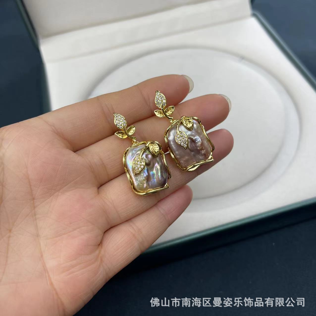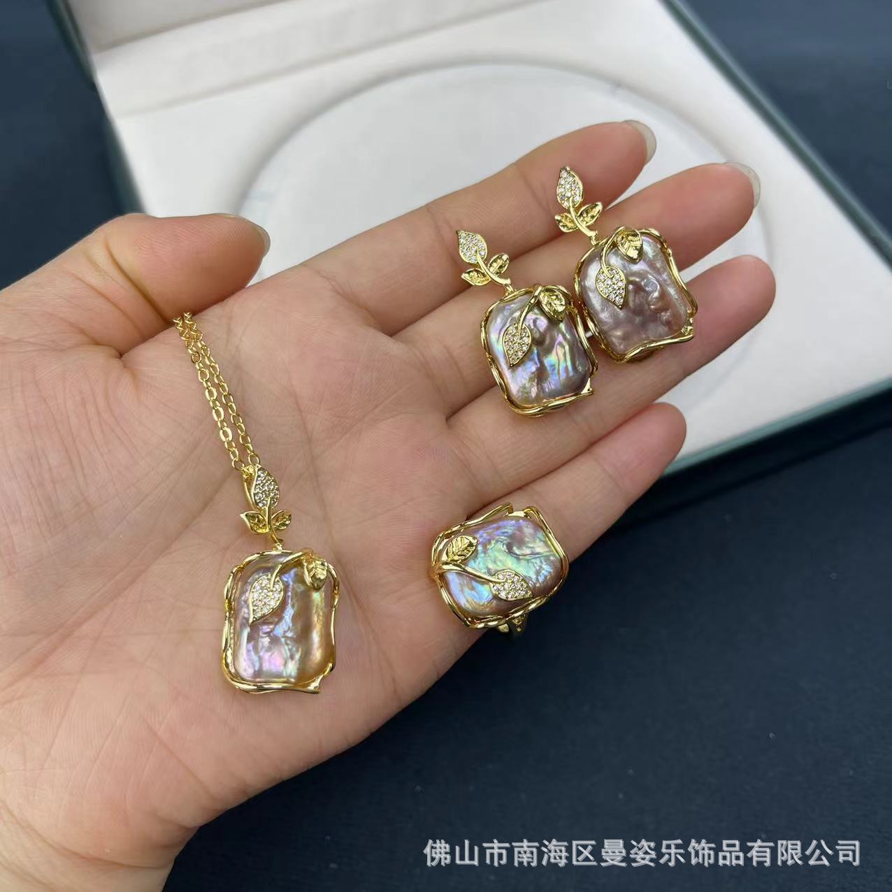 Натуральный барочный пресноводный жемчуг ювелирный набор 18K True Gold Color Color Покрытие из трех частей