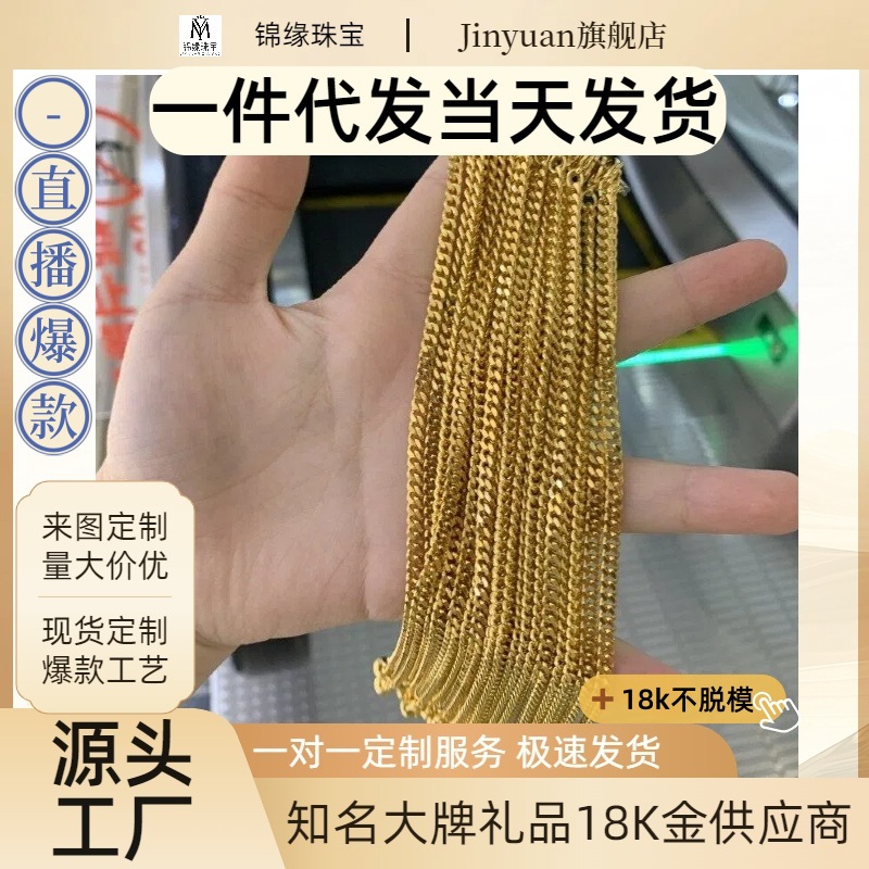 Золотая цепочка кубинского плетения 18к, цвет золота AU750, доступная роскошь, небольшая цена, унисекс, прямые продажи с фабрики, оптом.