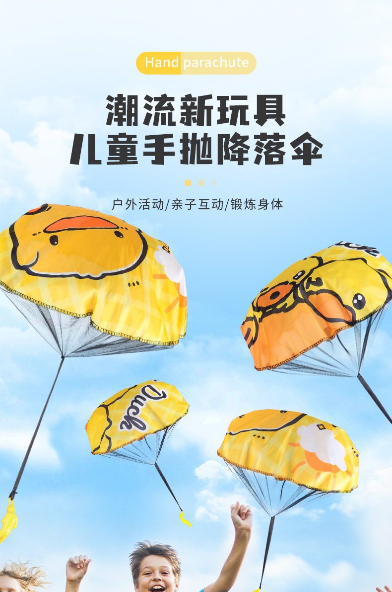 Маленькая желтая утка детский парашют на открытом воздухе