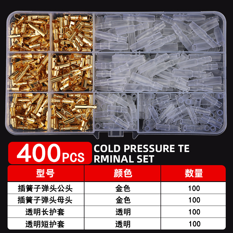 Трансграничный источник 400pcs в штучной упаковке 3.9mm пружинный соединительный клемм с оболочкой золотой пули мужской клемм