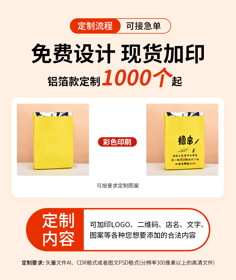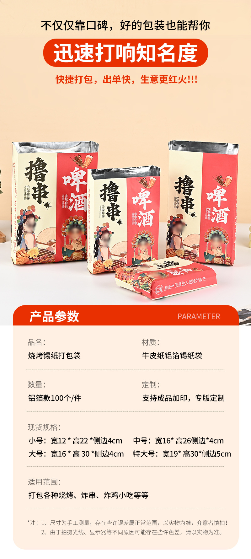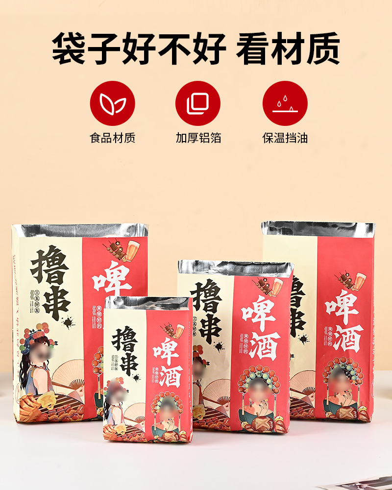 Мешок для барбекю Жареная оловянная бумага для изоляции маслянистая сумка Закуски Алюминиевый мешок на вынос Оптовая упаковка для печати