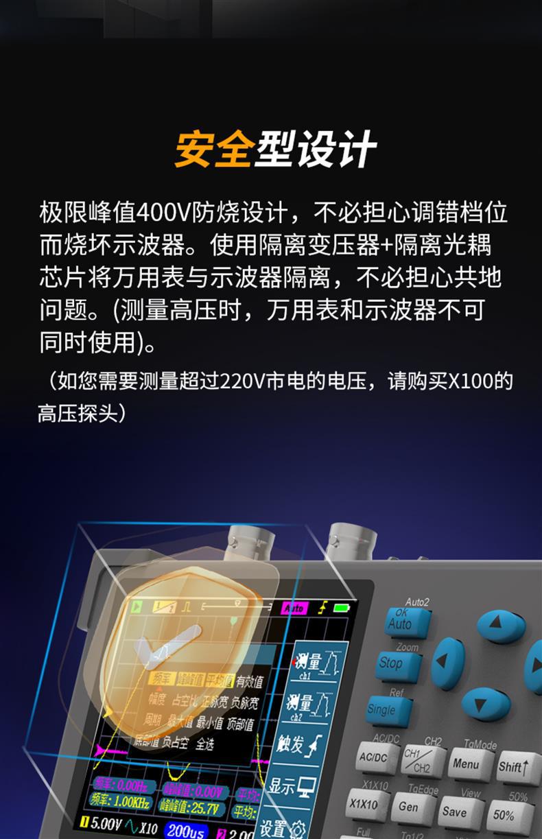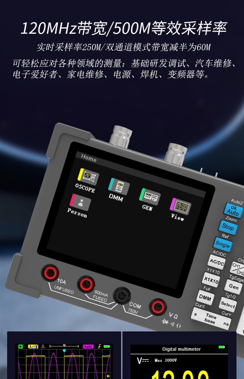 DSO3D12 Высокопроизводительный автоматический двухканальный цифровой осциллограф плюс мультиметр 120M пропускная способность 500M выборки