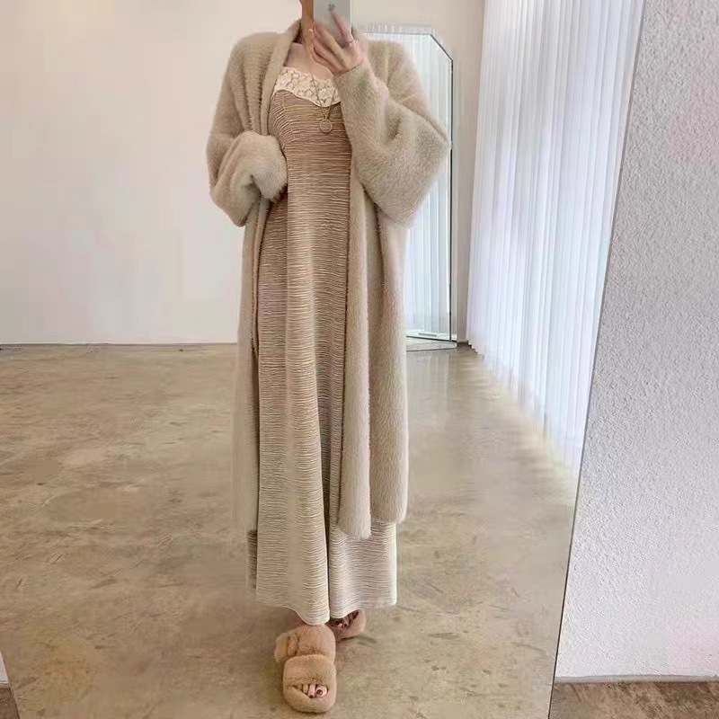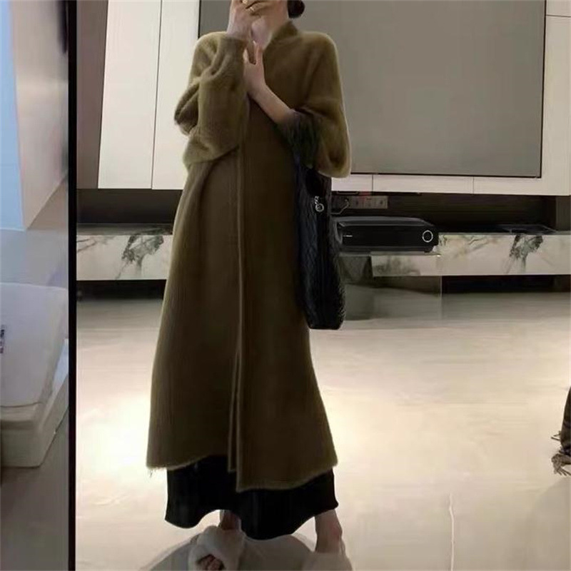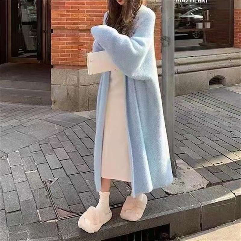 Мягкий вязаный кардиган из восковой норки, новинка 2023 года, осенняя свободная длинная верхняя одежда большого размера из ленивого норки в ленивом стиле для женщин