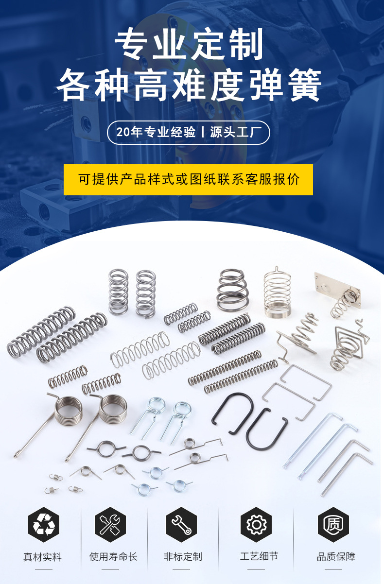 Прямые поставки с завода: пружины сжатия из нержавеющей стали, пружины кручения, витые пружины, пружины нестандартной формы, фиксаторы для ламп, малые высокоэластичные нестандартные изделия на заказ.