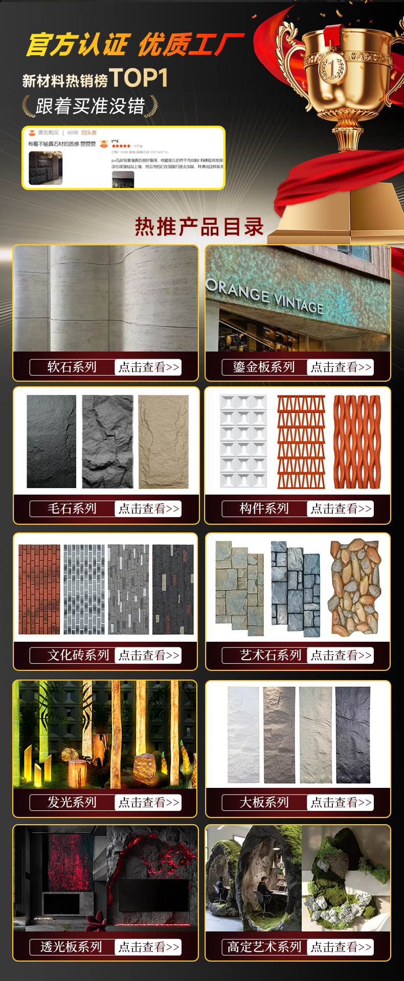 Ультратонкая каменная кожа 1200*600*15 мм [Замечания по цвету]; Тонкая каменная кожа 1200*600*30 мм [Замечания по цвету]; Тонкий грибной камень 1200*600*50MM [Замечания по цвету]; Jiuonggong сетка компоненты с одной стороны 1200*600*25MM [Замечания по цвету]; Двухсторонний элемент решетки Jiuongong 1200*600*50MM [Замечания по цвету]; Горные скалы 1200*600*100MM [Замечания по цвету]; Культурный кирпич 1220*300*25MM [Замечания по цвету]; Лунный камень 1200*600*30 мм [Замечания по цвету]; Тонкие линии струящейся воды 1200*600*20 [цветовые примечания]; Годовое колесо 1160*300*30MM [Замечания по цвету]; Камень черепахи 1600*870*30 мм [Замечания по цвету]; Толстая каменная кожа 1200*600*50MM [Замечания по цвету]; Толстый грибной камень 1200*600*80MM [Замечания по цвету]; Гофрированный элемент с одной стороны 1200*600*40MM [Замечания по цвету]; Гофрированный элемент двусторонний 1200*600*80MM [Замечания по цвету]; Старая лодка 2000*1000*25MM [Замечания по цвету]; Лемстоун 3000*600*80MM [Замечания по цвету]; Перо камень 900*200*20 [цветовые замечания]