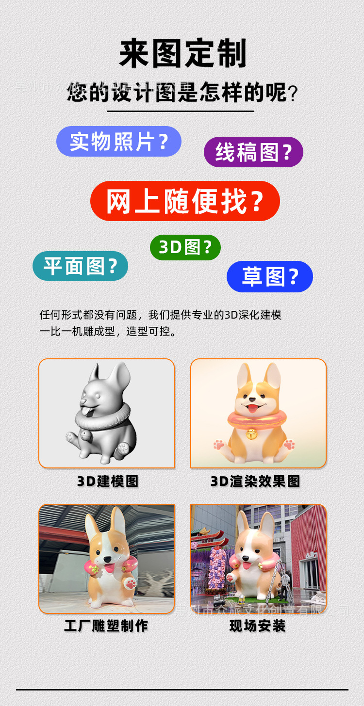 Производитель индивидуальных скульптур для выставок, наружной ландшафтной установки, украшений для развлекательных мест, отелей, площадей, эскизов талисманов