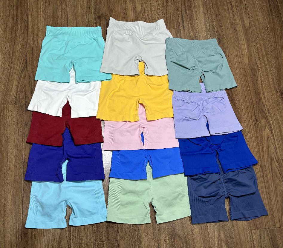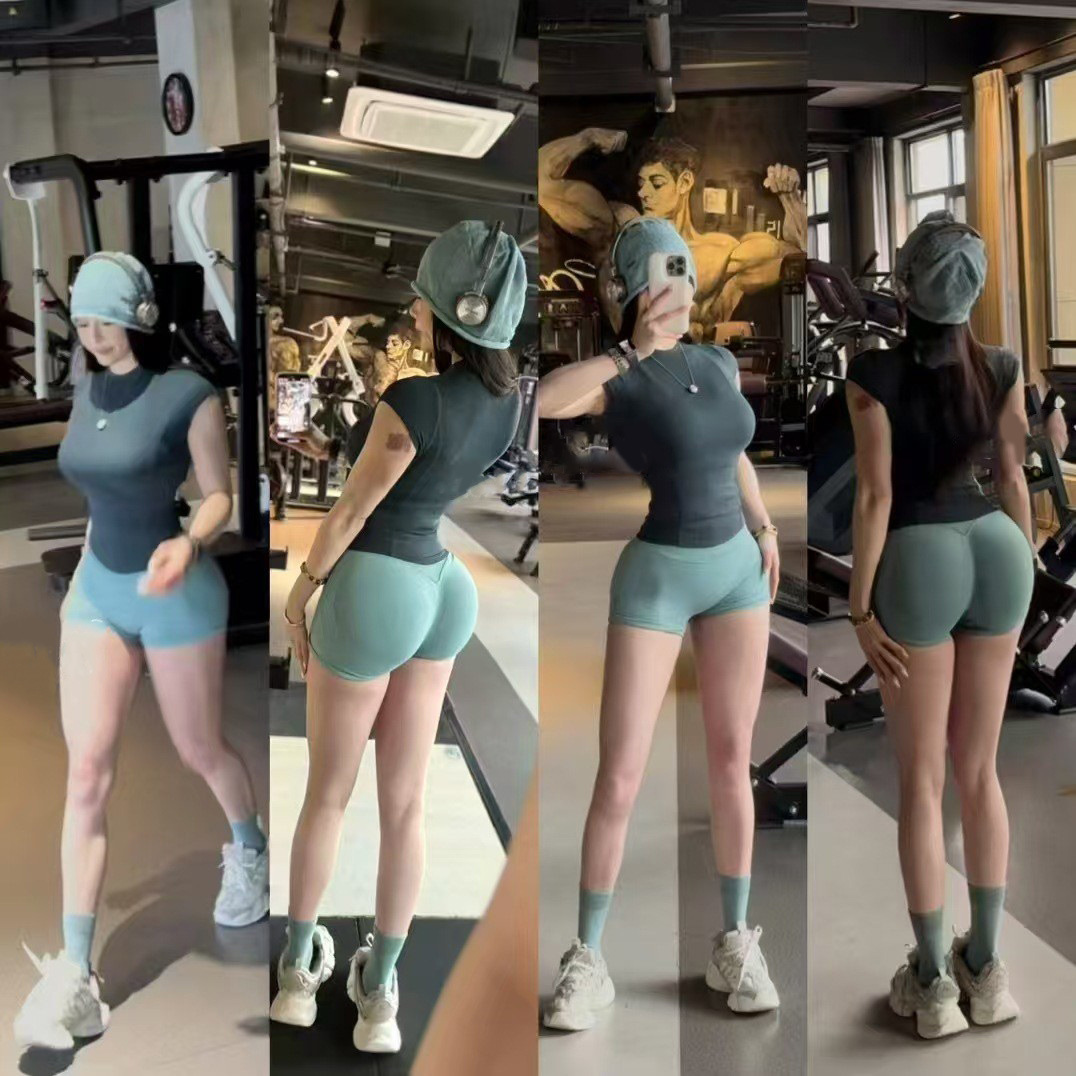DFY плоская выравнивание высокой пули нейлон трехсегментные талии складки, ягодицы бесшовные нижние шорты для йоги