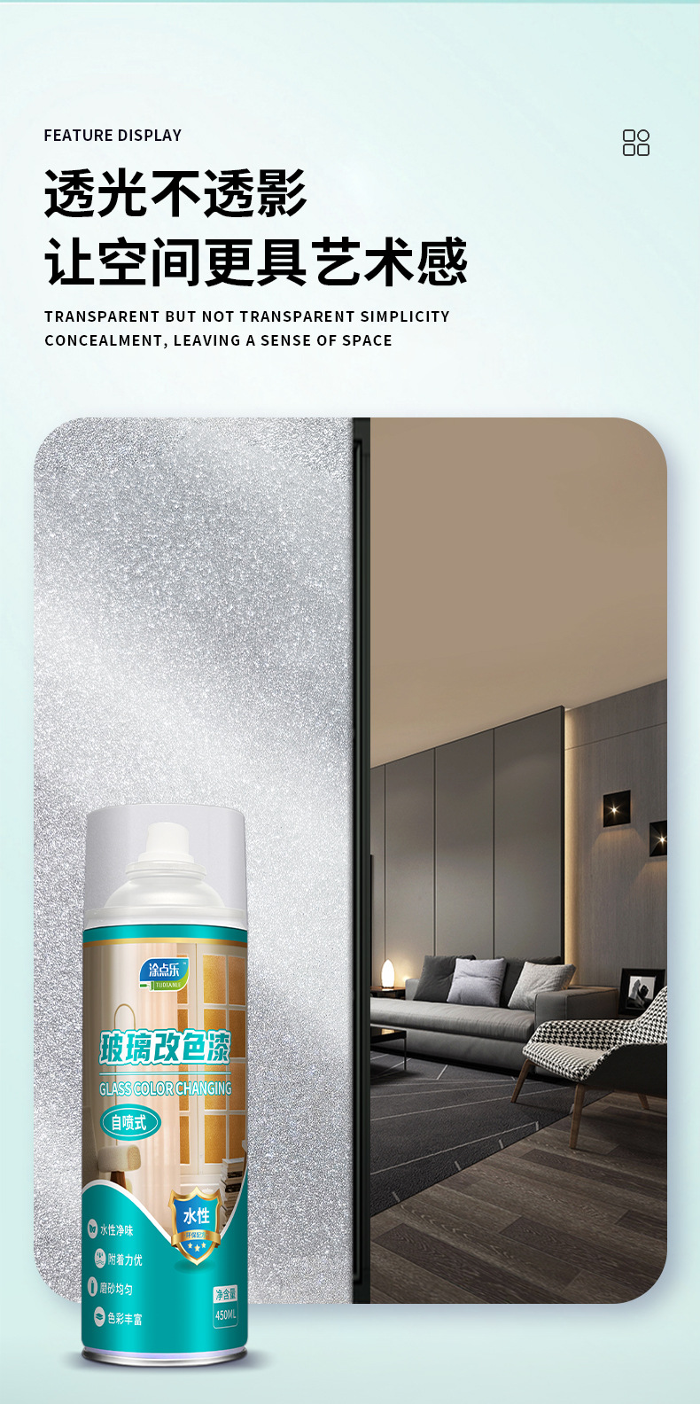 Стеклянная матовая краска защищает конфиденциальность и меняет цвет стекла.