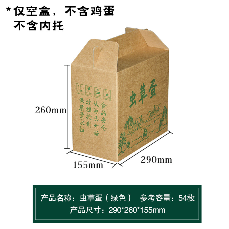 Глупые яйца без подкладок (можно упаковать около 54 штук); Чайное яйцо A без доверенных средств (может быть установлено около 54 штук); Чайное яйцо B без доверенных средств (может быть установлено около 54 штук); Кордицепс яйца без зеленого (можно установить около 54 штук); Яйца кордицепса без подкладок (можно установить около 54 штук); Кордицепс черные яйца феникса; Богатые селеном яйца без сопротивления; Земные яйца без подкладок (можно установить около 54 штук); Без почвенных яиц без подклада (можно установить около 54 штук); Свежие яйца, выращенные на свободном пастбище, в простой картонной упаковке, 40 яиц — без лотка.; Свежие яйца от свободно выращенных птиц, коробка из крафт-картона с плоской крышкой, 50 яиц с лотком.; Свежие яйца свободного выращивания, простая картонная упаковка, 50 яиц, без лотка.; 30 коричневых кожаных крышек для яиц с поддоном; Свежие яйца из свободного выращивания, коробка на 40 штук с картонным разделителем.; 30 штук коричневых кожаных крышек для яиц без поддержки
