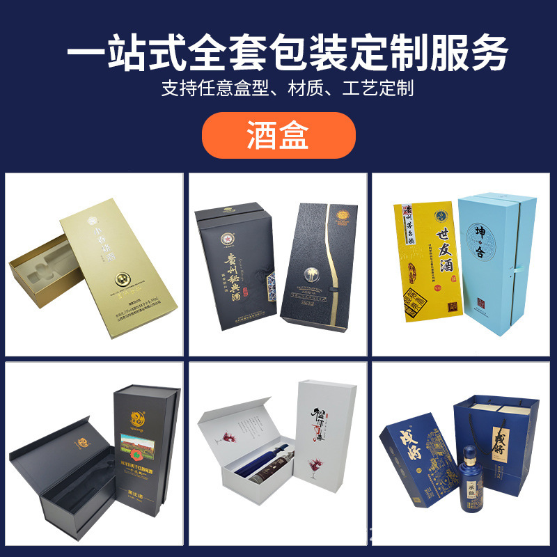 Производитель высококачественной упаковки для вина изготавливает на заказ упаковочные коробки для алкогольных напитков и изготавливает полный набор подарочных коробок для высококачественного бутилированного вина с откидной крышкой.