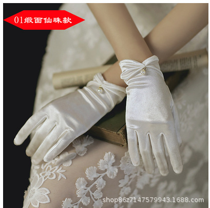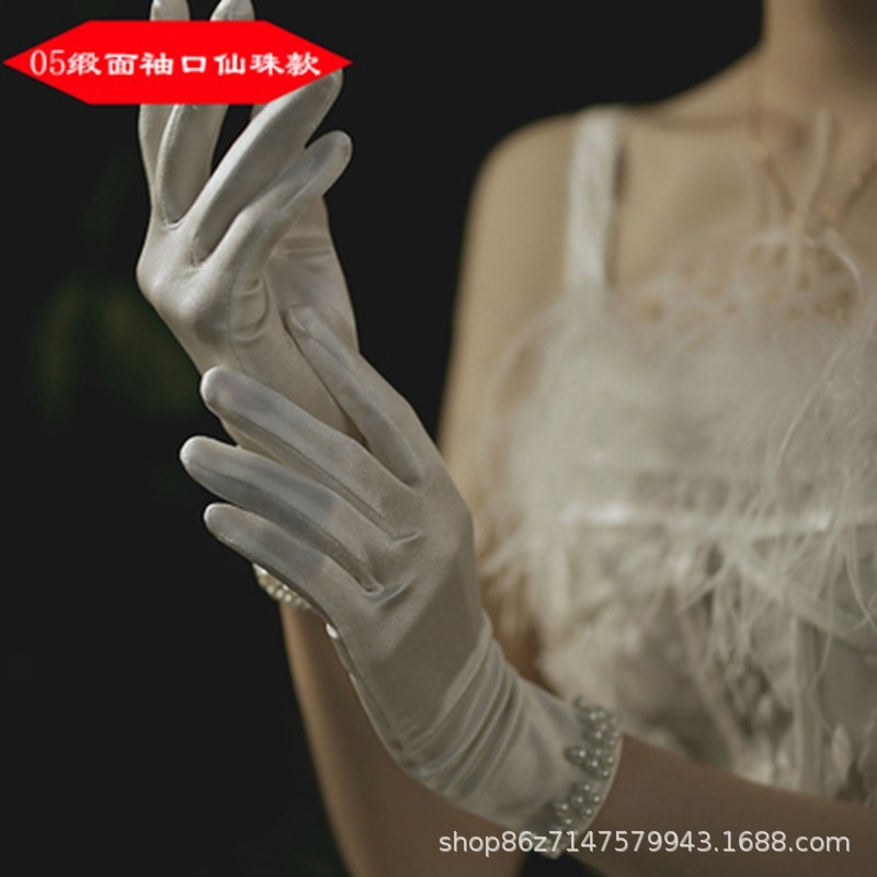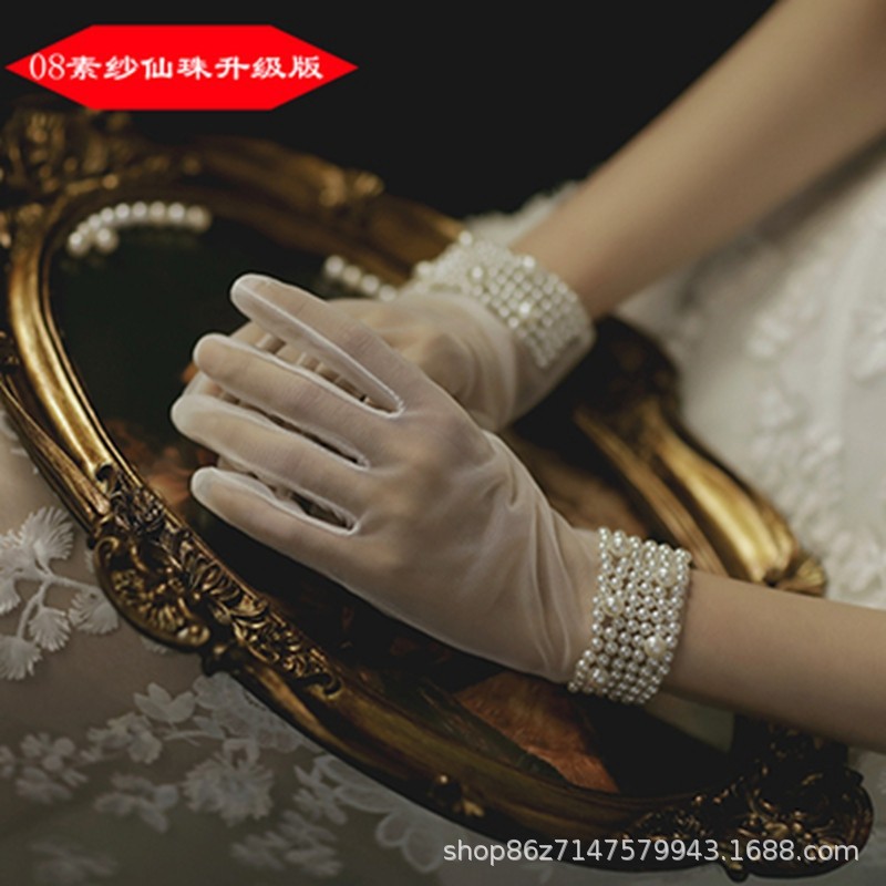 Свадебные перчатки жемчуг белый свадебный подарок атласная сетка красная фотография