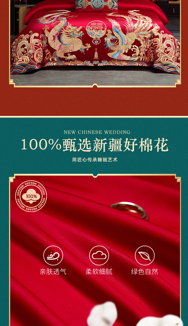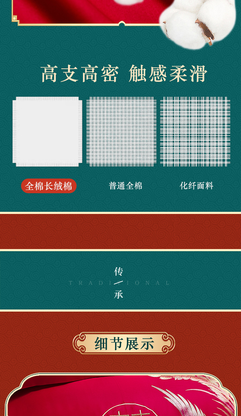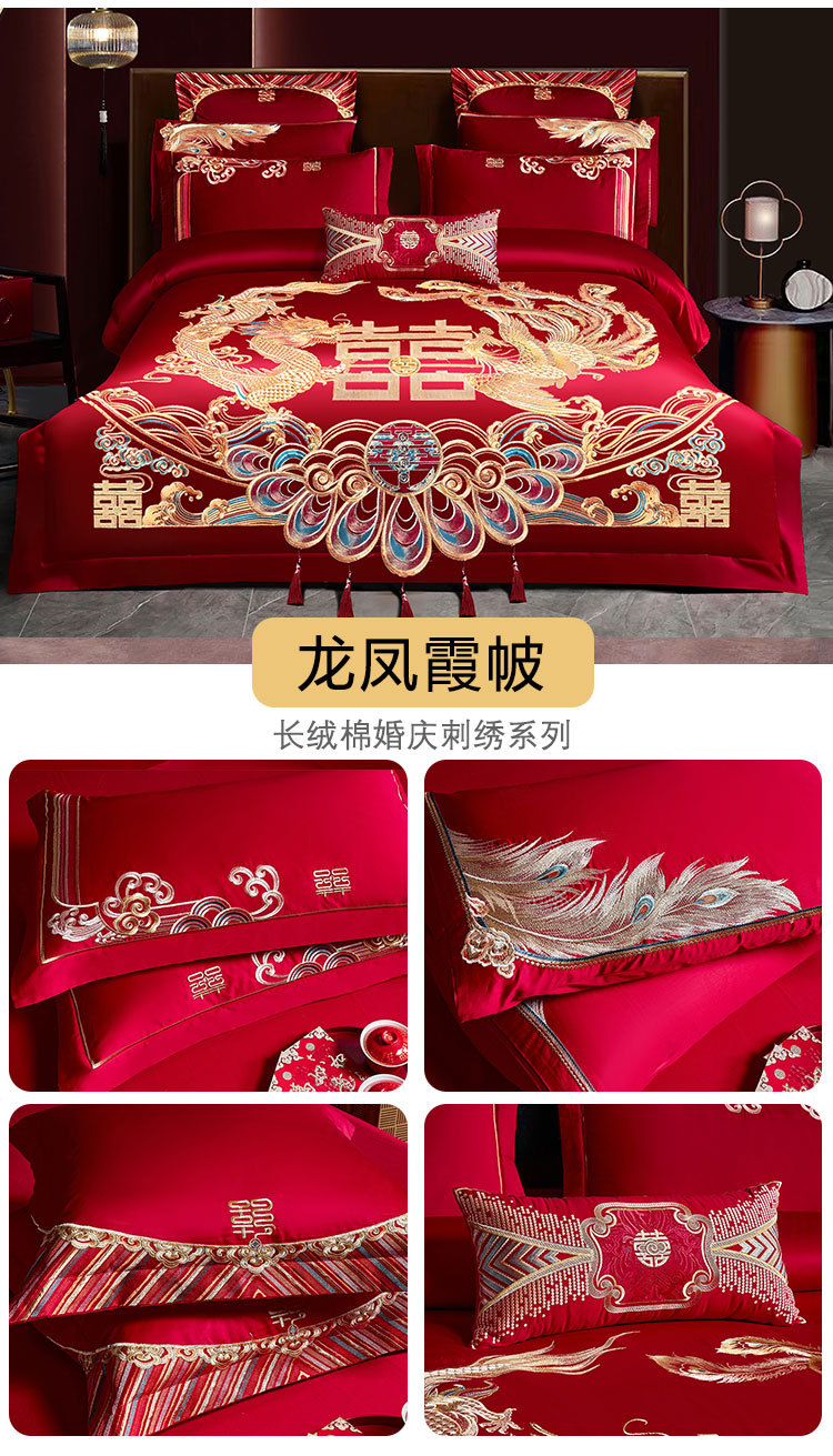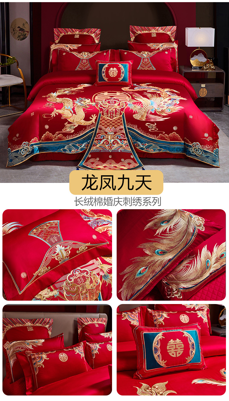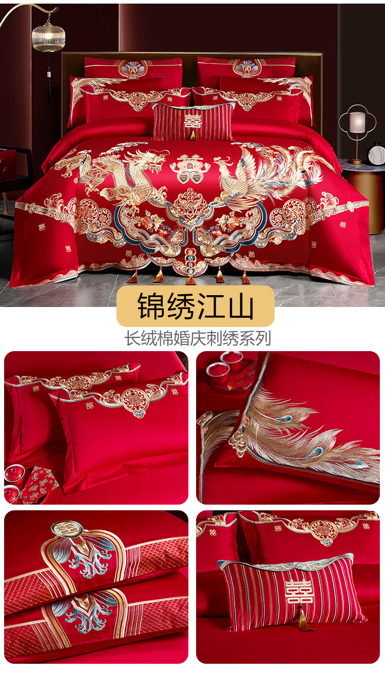 Двусторонний длинноволокнистый хлопок Jinxiujiangshan-100.; Поздравление с Драконом и Фениксом — двусторонний длинноволокнистый хлопок плотностью 100 штук; Двусторонний длинноволокнистый хлопок Longfeng Jiutian-100.; Dragon and Phoenix Love-100 штук двустороннего хлопка с длинными волокнами; Двойное счастье Дракона и Феникса — двусторонний длинноволокнистый хлопок плотностью 100 штук; Полет дракона и танец Феникса — двусторонний длинноволокнистый хлопок плотностью 100 нитей; Рождайте ребенка рано — двусторонний длинноволокнистый хлопок плотностью 100.; Поздравления с Драконом и Фениксом — красный, 100 штук, двусторонний хлопок с длинными волокнами; Свадебное платье «Дракон и Феникс» — двусторонний длинноволокнистый хлопок плотностью 100 штук; Двусторонний длинноволокнистый хлопок Longfengxiapei-100.; Longrui Chengxiang-100 двусторонний длинноволокнистый хлопок; Dragon and Phoenix Heritage — двусторонний длинноволокнистый хлопок плотностью 100 нитей.; Двусторонний длинноволокнистый хлопок Longfeng Huazhang-100.; Процветающая династия Тан - 100 счетов, двусторонний длинноволокнистый хлопок.