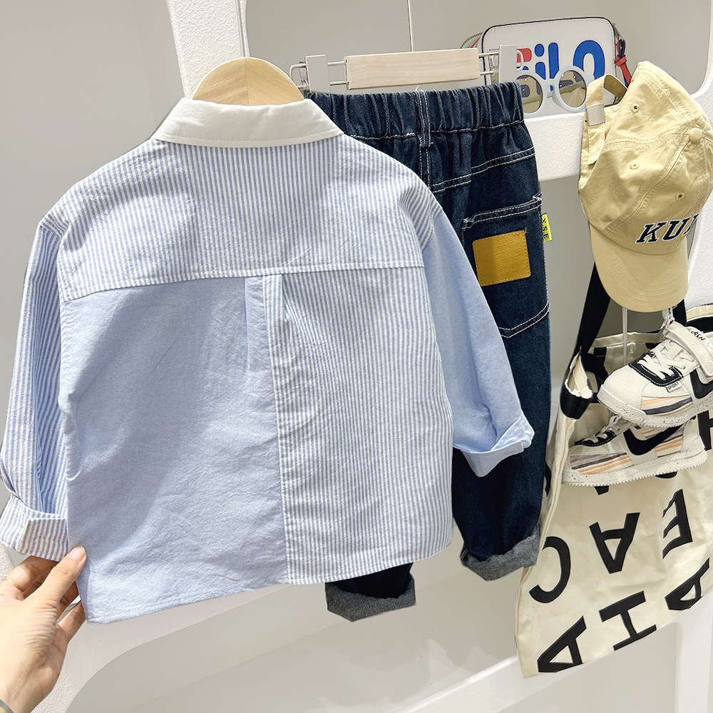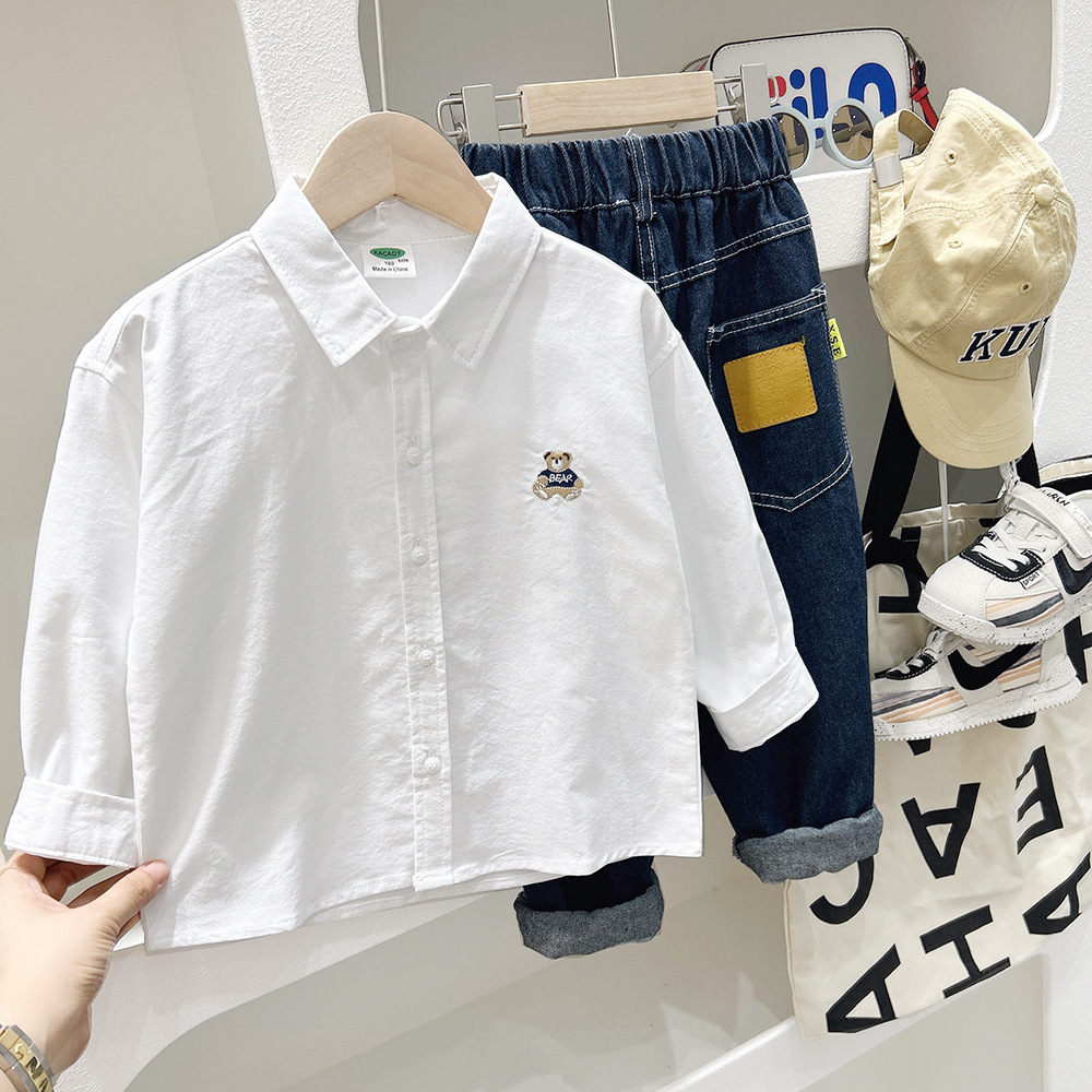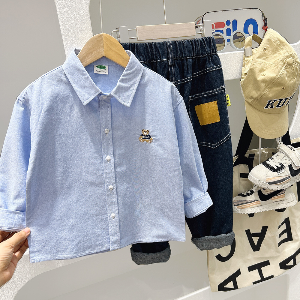 Детская осенняя рубашка с длинными рукавами, новинка 2025 года, тонкая верхняя одежда-оксфорд для мальчиков среднего и большого размера, детская повседневная рубашка с героями мультфильмов, тренд