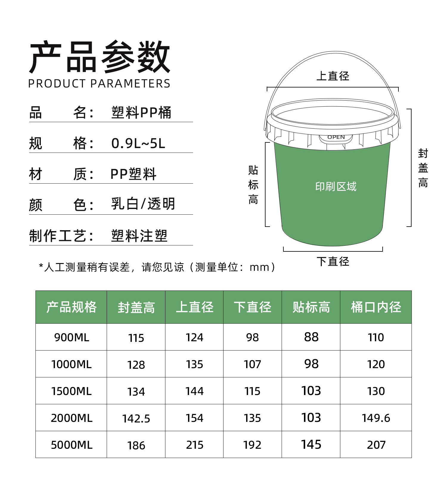 Герметичная пищевая упаковка из полипропилена для фруктов, ферментированных напитков, закусок, сладкого вина, упаковочная бочка, белая прозрачная пластиковая бочка для винного донного осадка, круглая форма