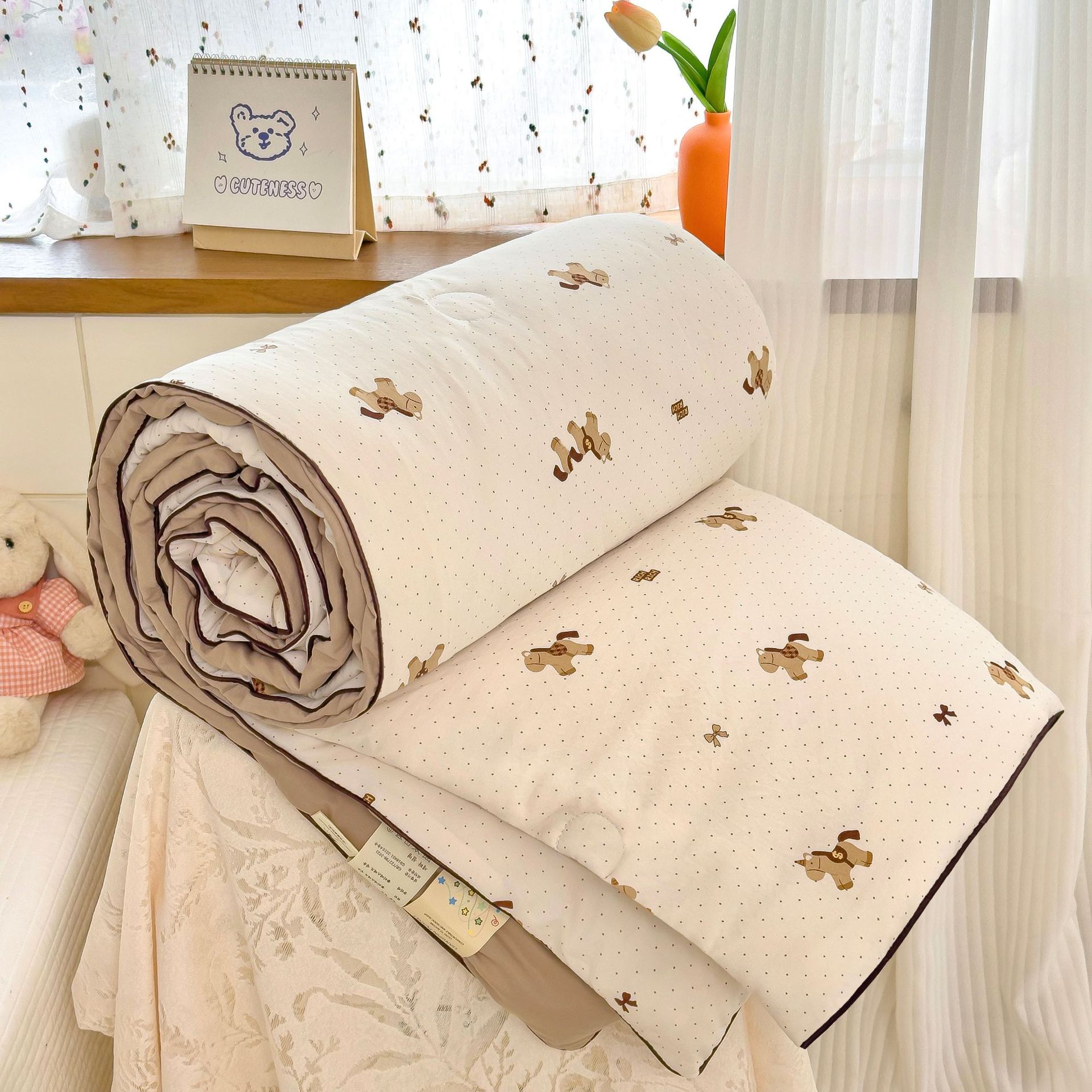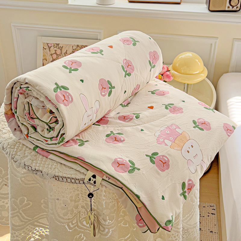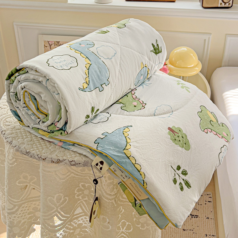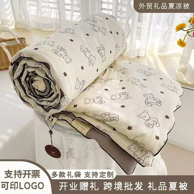 Летнее одеяло класса А из стираного хлопка с мультяшным принтом, двухслойная марля, одеяло с наполнителем из соевого волокна для кондиционированных помещений, подарочное летнее одеяло, оптовая продажа для внешней торговли.