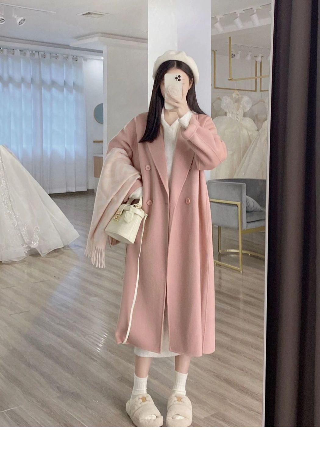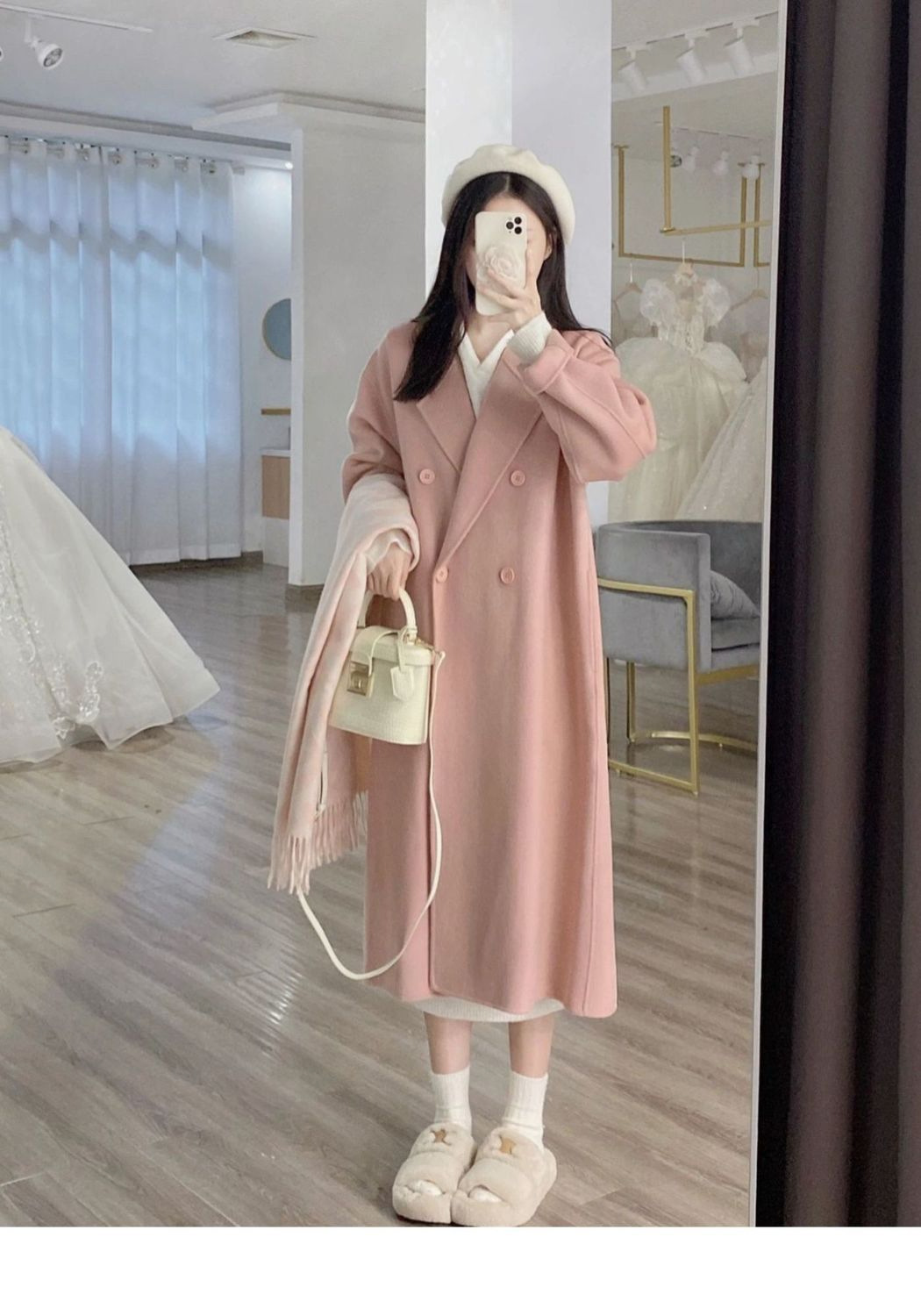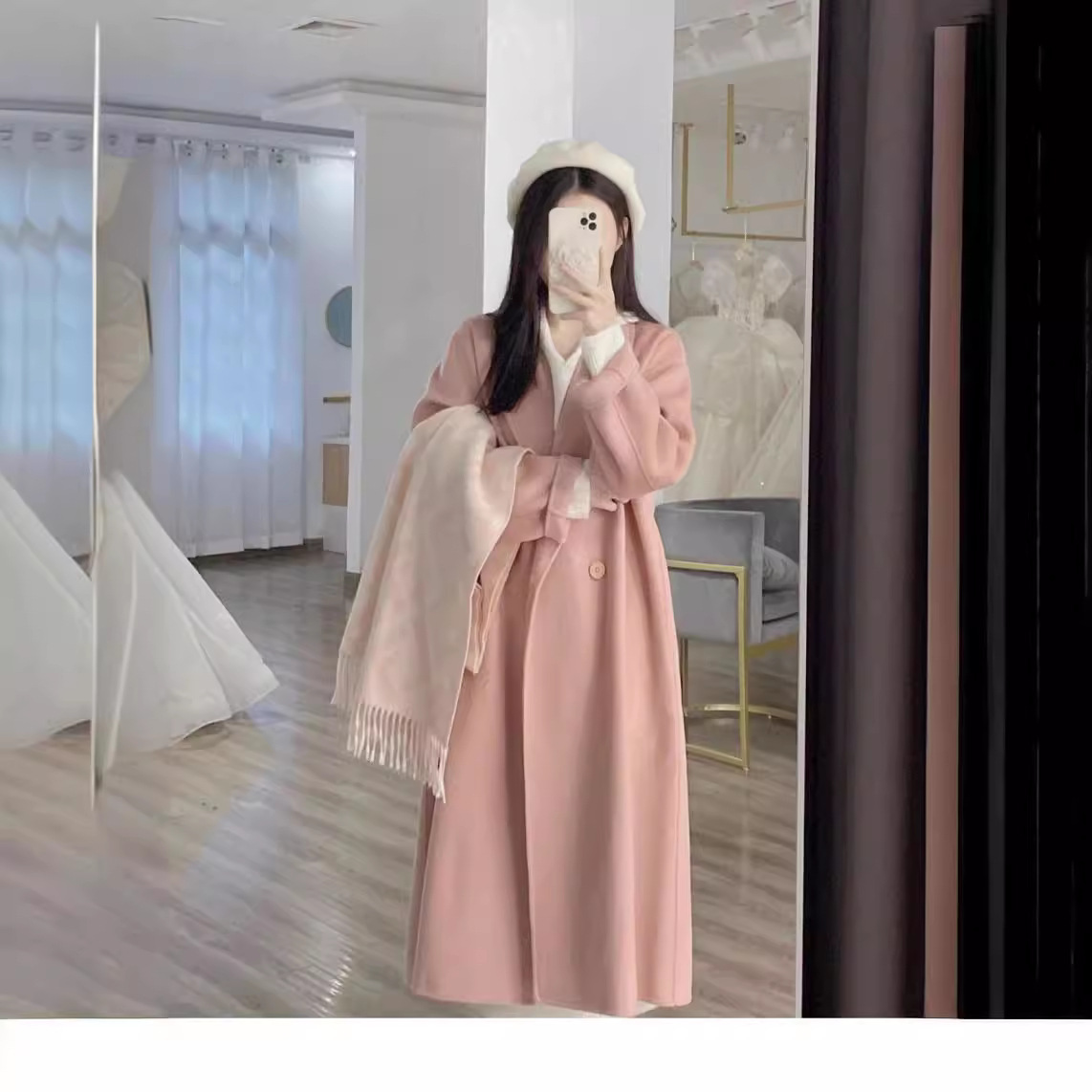 Популярная шерстяная верхняя одежда для женщин 2024, весна и осень, новая шерстяная верхняя одежда для маленьких людей, горячий стиль, стиль Хепберн, корейский стиль