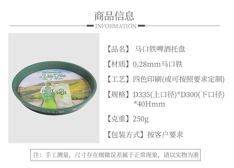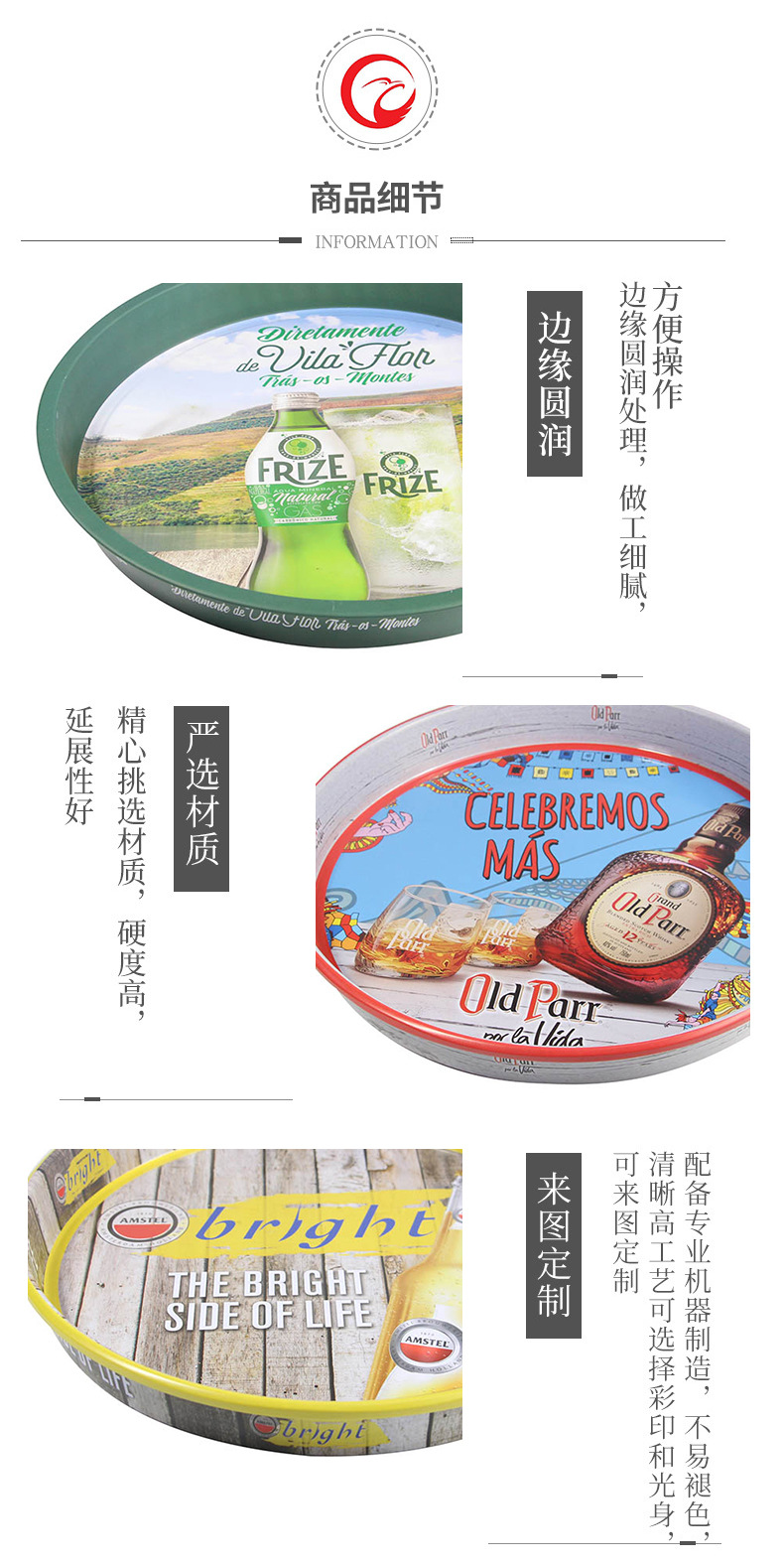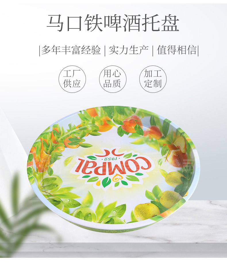 Лосьевые подносы Бар-бар напитки Пиво Круглый поднос Фруктовые тарелки Пищевые подносы Металлические тарелки
