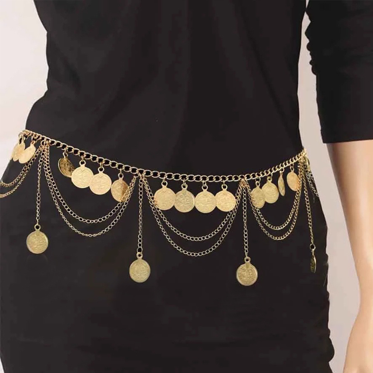 Ретро этнический стиль многослойная древняя монета цепочка талии цепи женские платья высокого уровня чувство украшения живота танец талии цепи оптом
