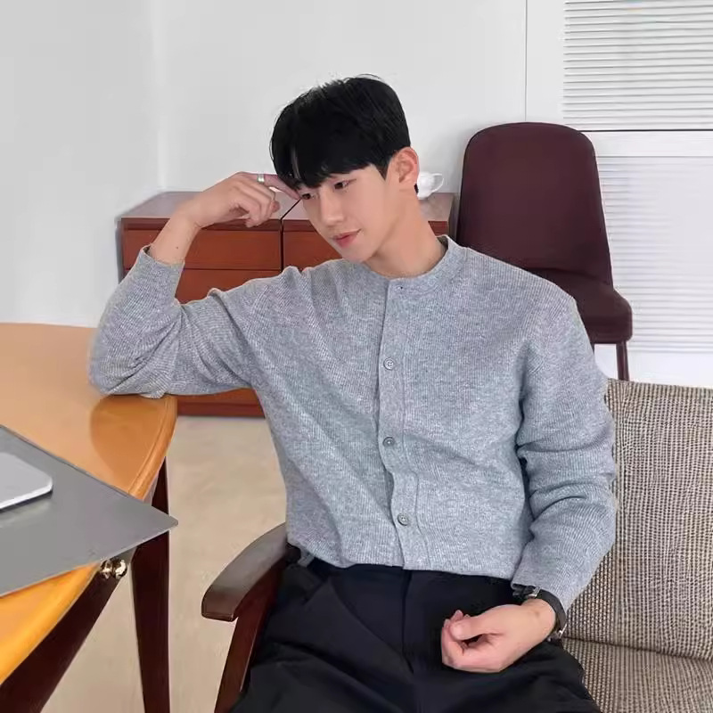 Корейский ленивый стиль сплошной свитер с круглым вырезом пальто мужской осенний и зимний вязаный кардиган
