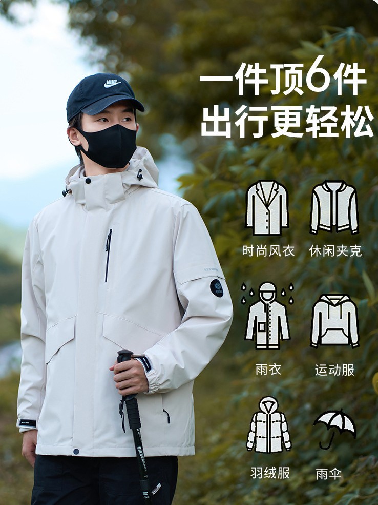 Осенне-зимняя ветрозащитная, водонепроницаемая и износостойкая рабочая одежда для активного отдыха и альпинизма, комплект из трех предметов: съемный флисовый костюм-двойка.
