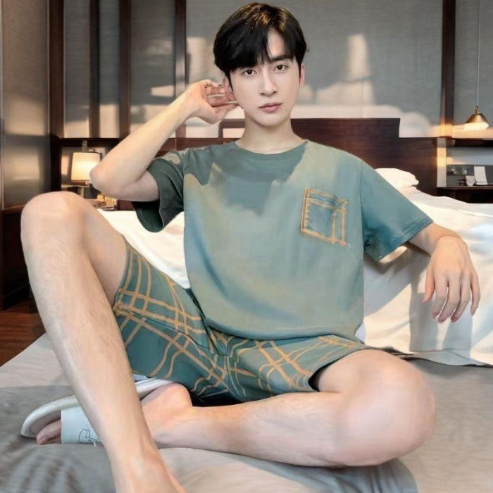 2024 пижама для мужчин Летнее молоко с короткими рукавами мультфильм повседневная молодежь студентка тонкая домашняя одежда набор