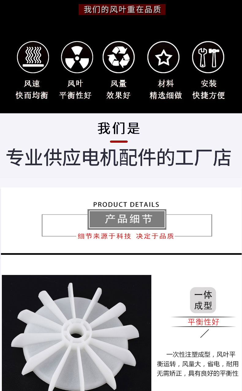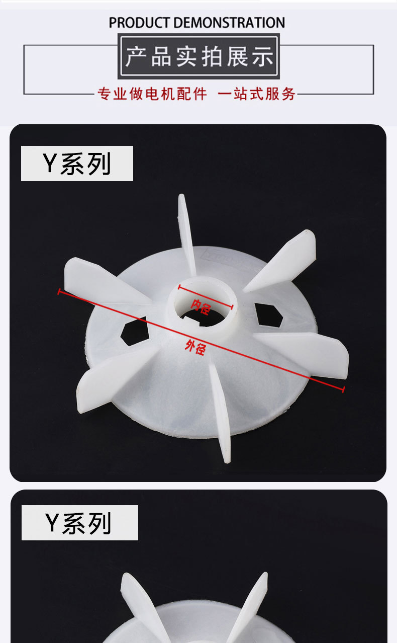 Производитель поставляет электромотор фитинги для ветряных листьев вентилятор Y серии пластик, усиленный несколькими спецификациями для быстрого рассеивания тепла