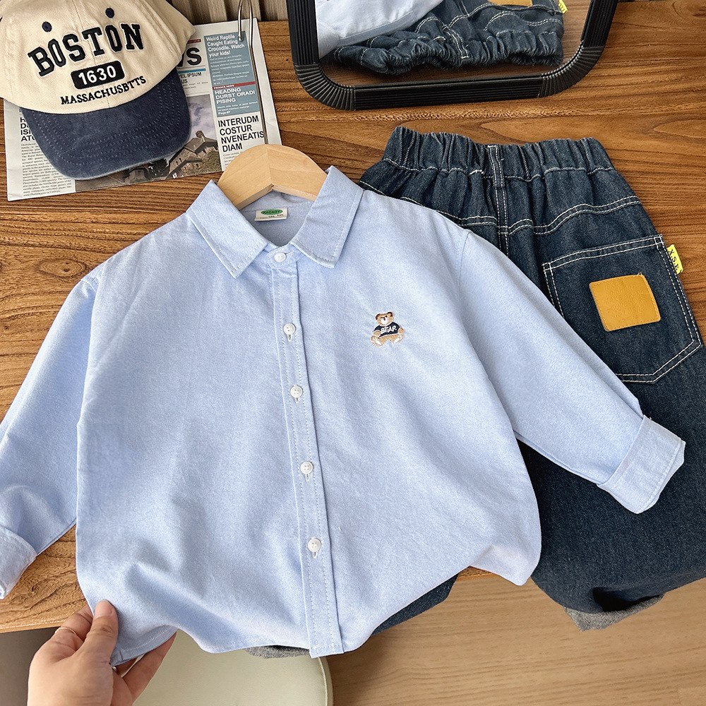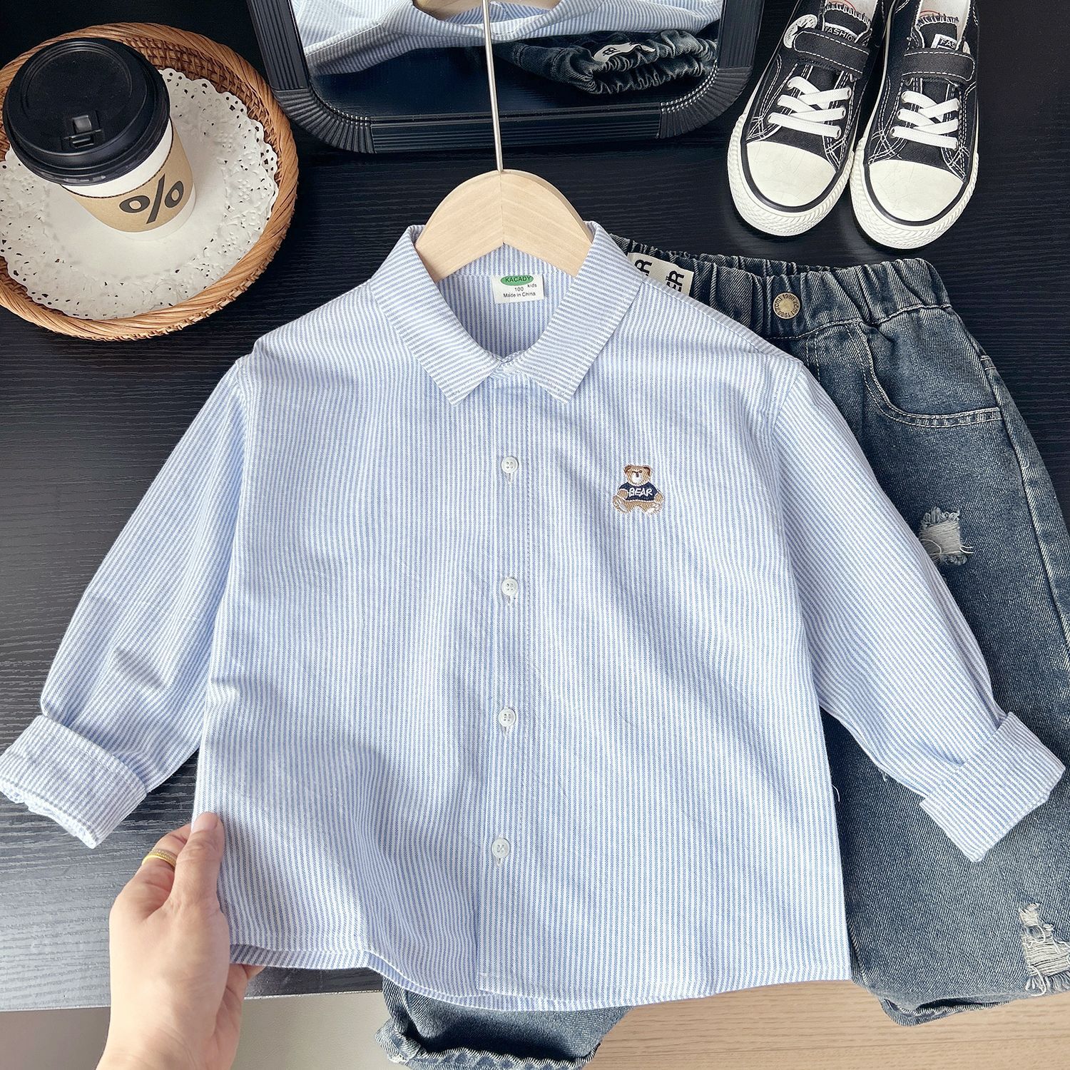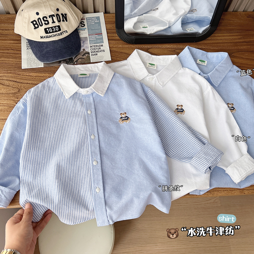 Детские рубашки, рубашки в полоску для мальчиков, весенне-осенняя одежда, новый стиль осени 2025 года, повседневные топы с героями мультфильмов среднего и большого размера для детей.