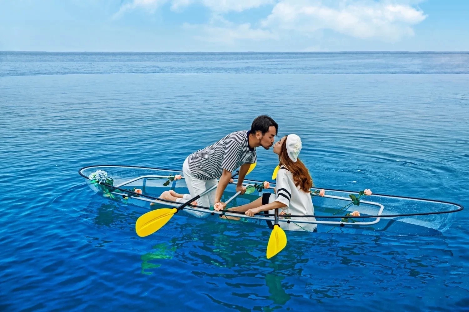 Прозрачная лодка для прогулок в живописных местах, кристальная лодка, свадебная фотосъемка, популярная в интернете стеклянная лодка, прозрачная лодка для водных прогулок, парковый каяк, гребная лодка.