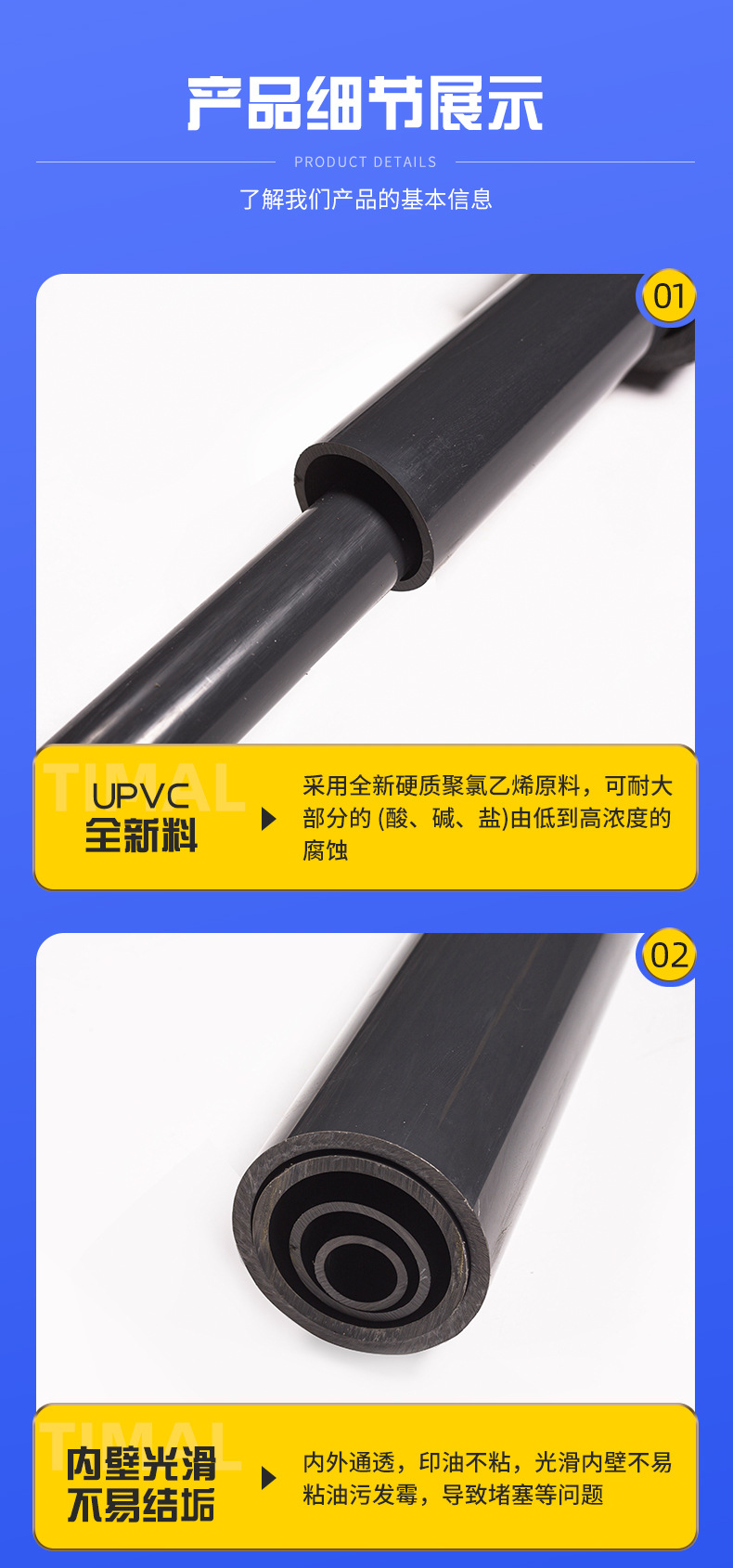 Дренажная труба из ПВХ, химическая труба промышленного класса, труба для подачи жесткой сточных вод, устойчивая к кислотам и щелочам, верхняя водопроводная труба оптом
