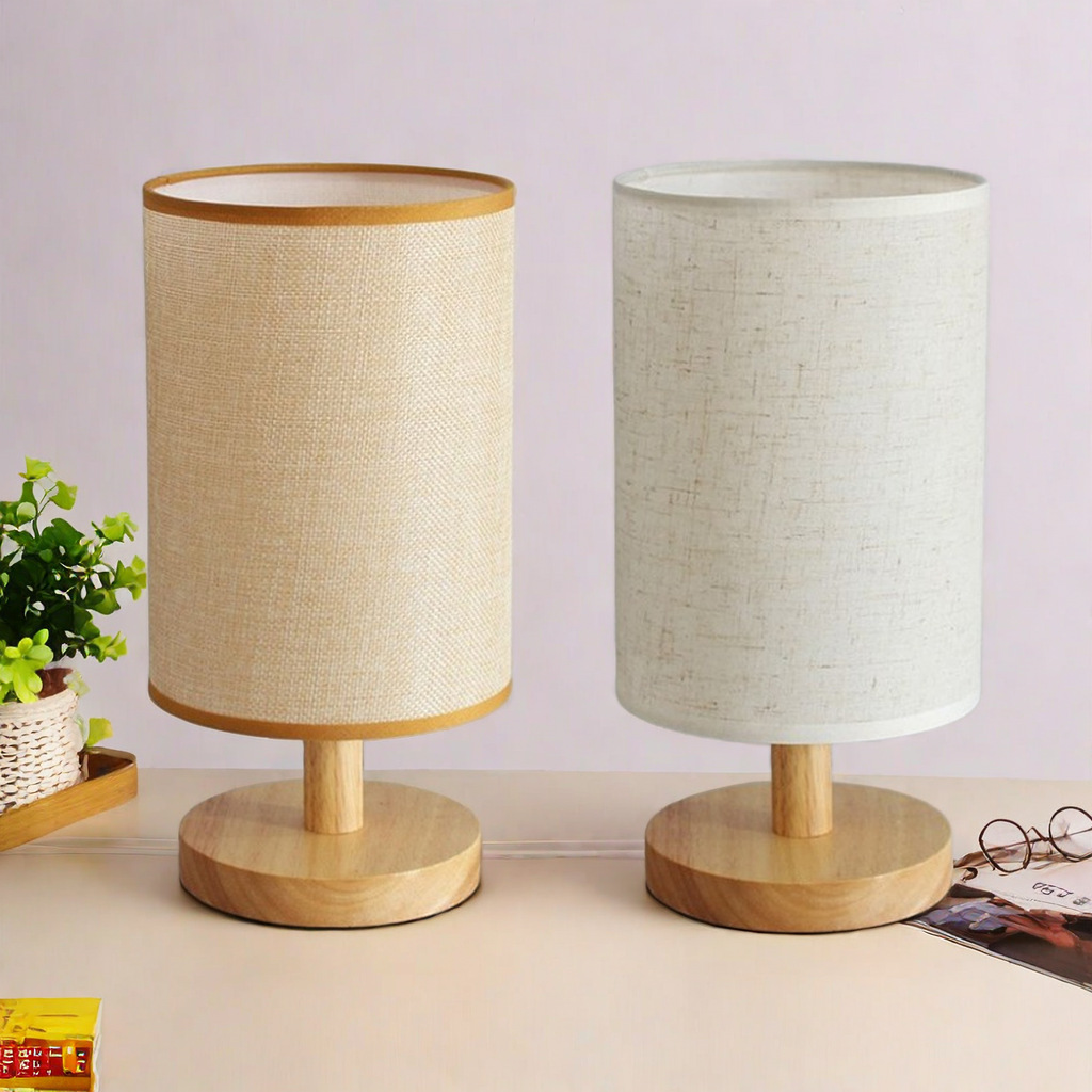 Настольная лампа из массива дерева с чехлом из скандинавской ткани