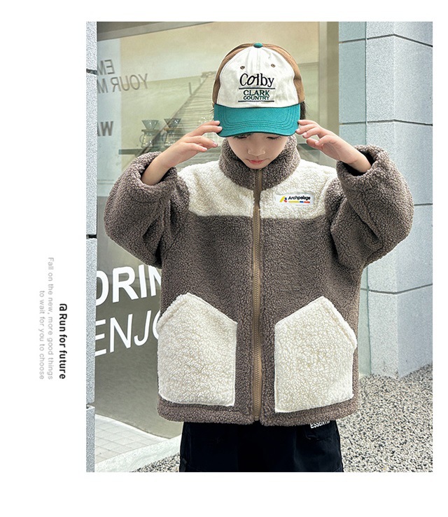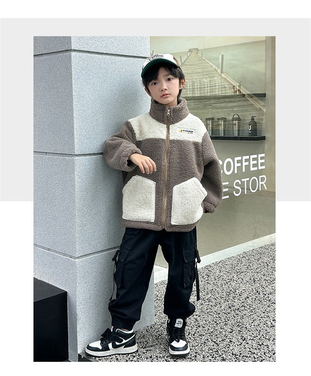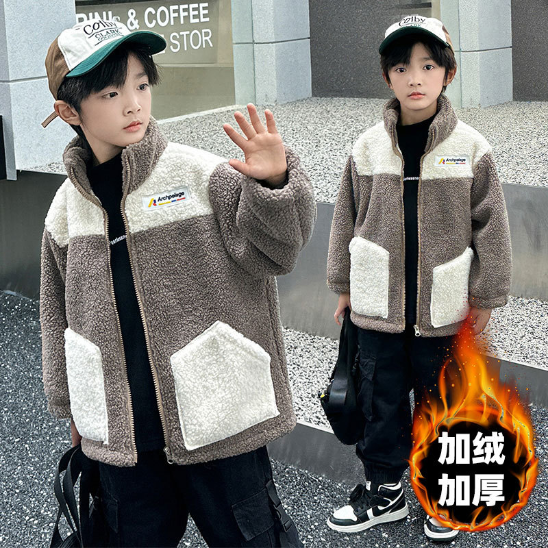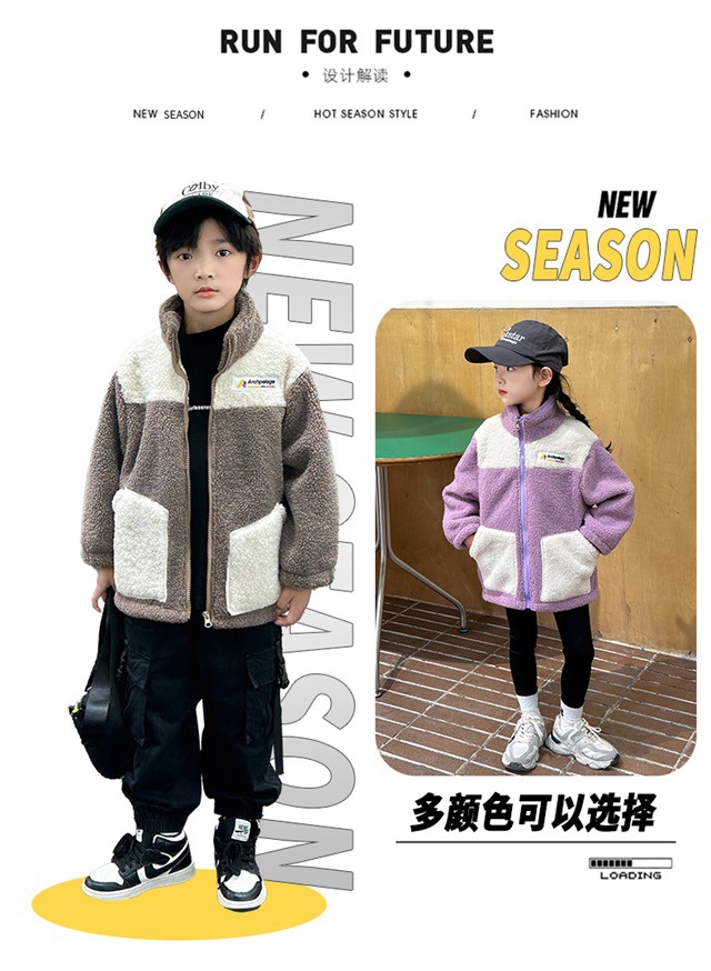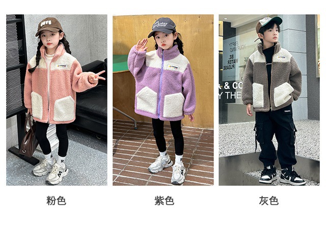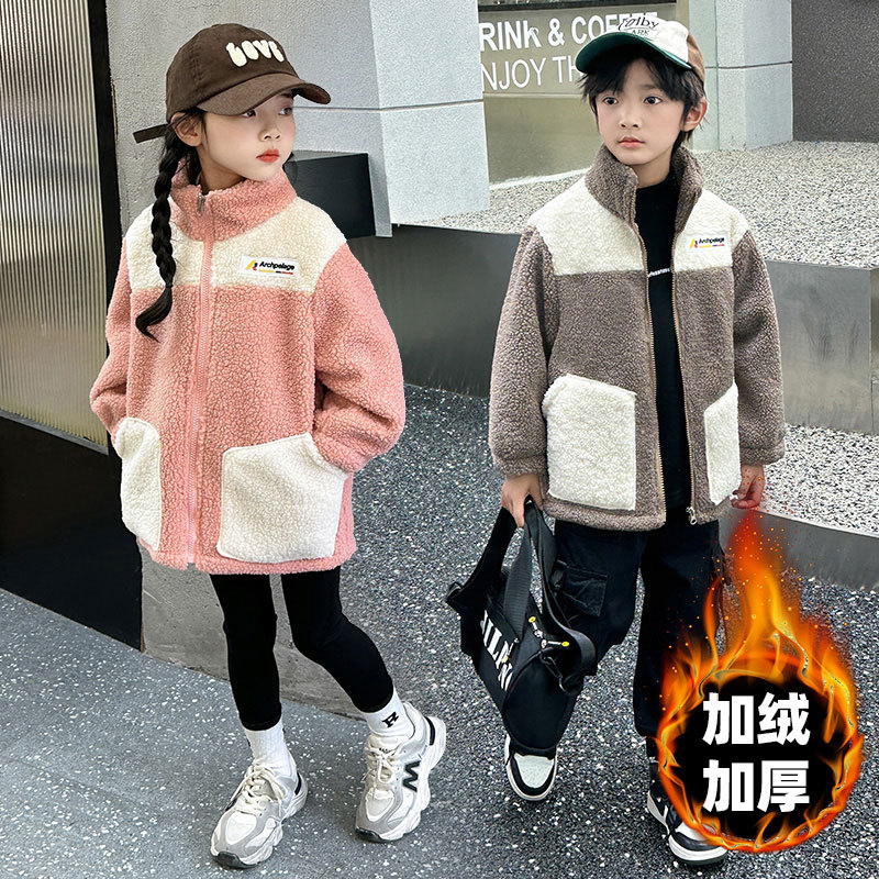 Детские плюшевые куртки модные повседневные девочки мальчики утолщенные большие и средние дети зимние осенние и зимние гранулированные пальто