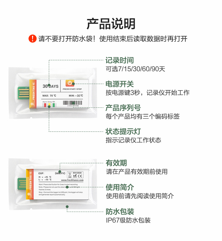 Одноразовый регистратор температуры, специально для рефрижераторных контейнеров холодовой цепи, высокоточный цифровой термометр