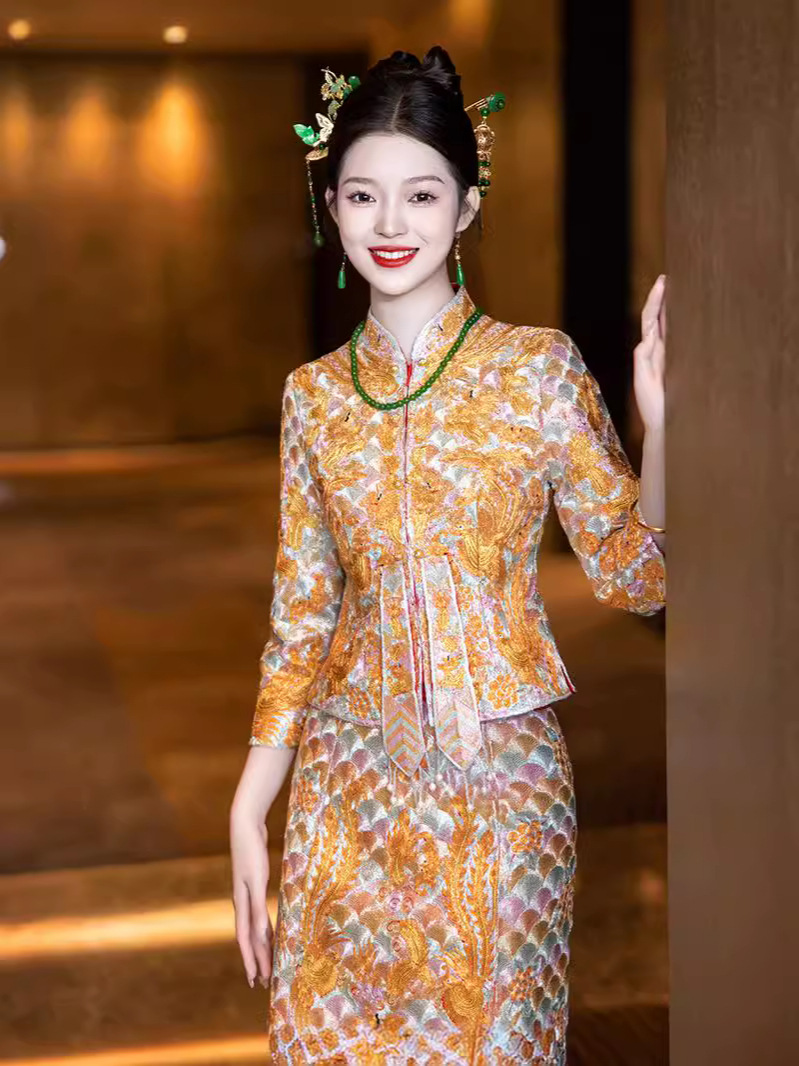 Новое свадебное платье в китайском стиле с изображением дракона и феникса для невест 2025 года, свадебное платье Сюхэ для речей и выхода из дома невесты, облегающее платье с летней вышивкой.