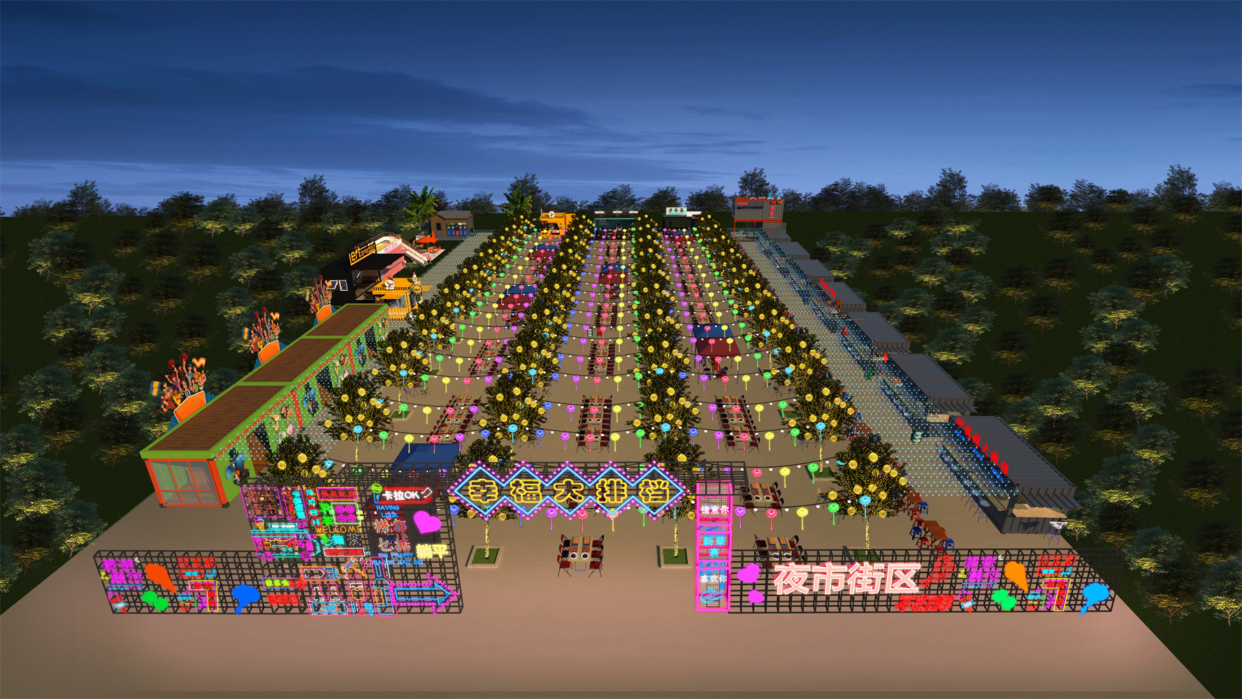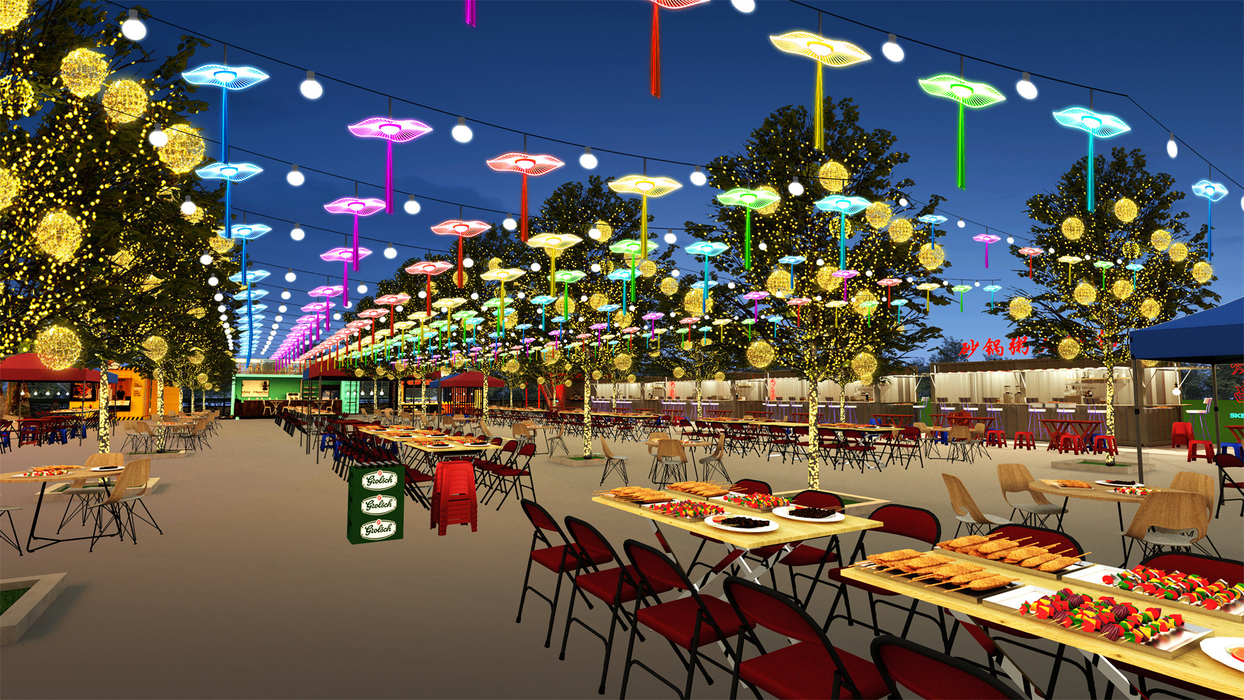 Проект освещения ландшафтного освещения для барбекю Ночной рынок дизайн освещения счастливого киоска план освещения Инжиниринговая компания