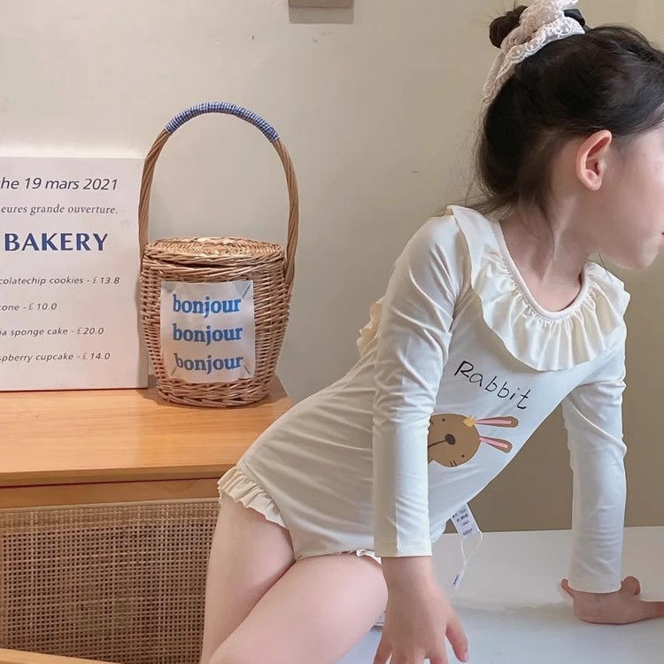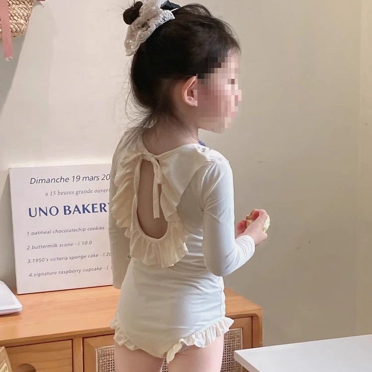 Детская одежда для девочек Купальник с длинными рукавами Летняя одежда для детей Абрикосовый купальник для девочек 0050A019