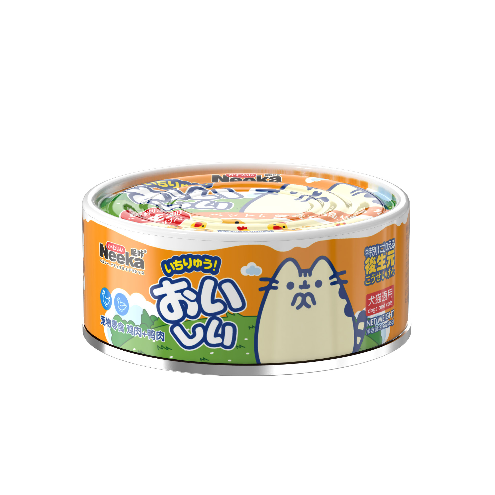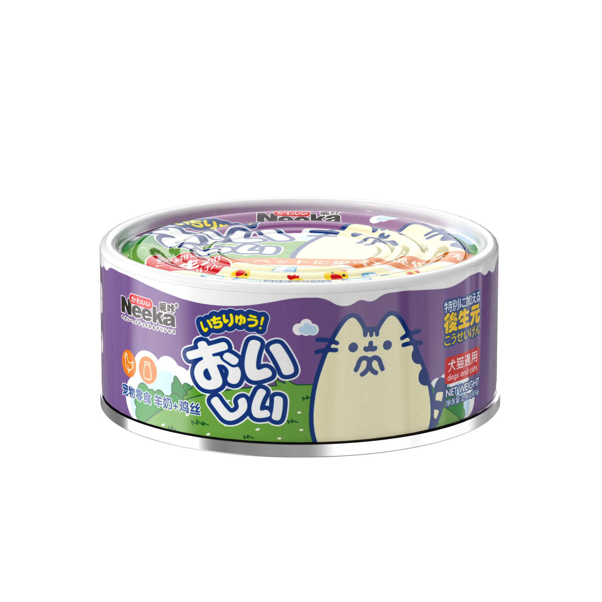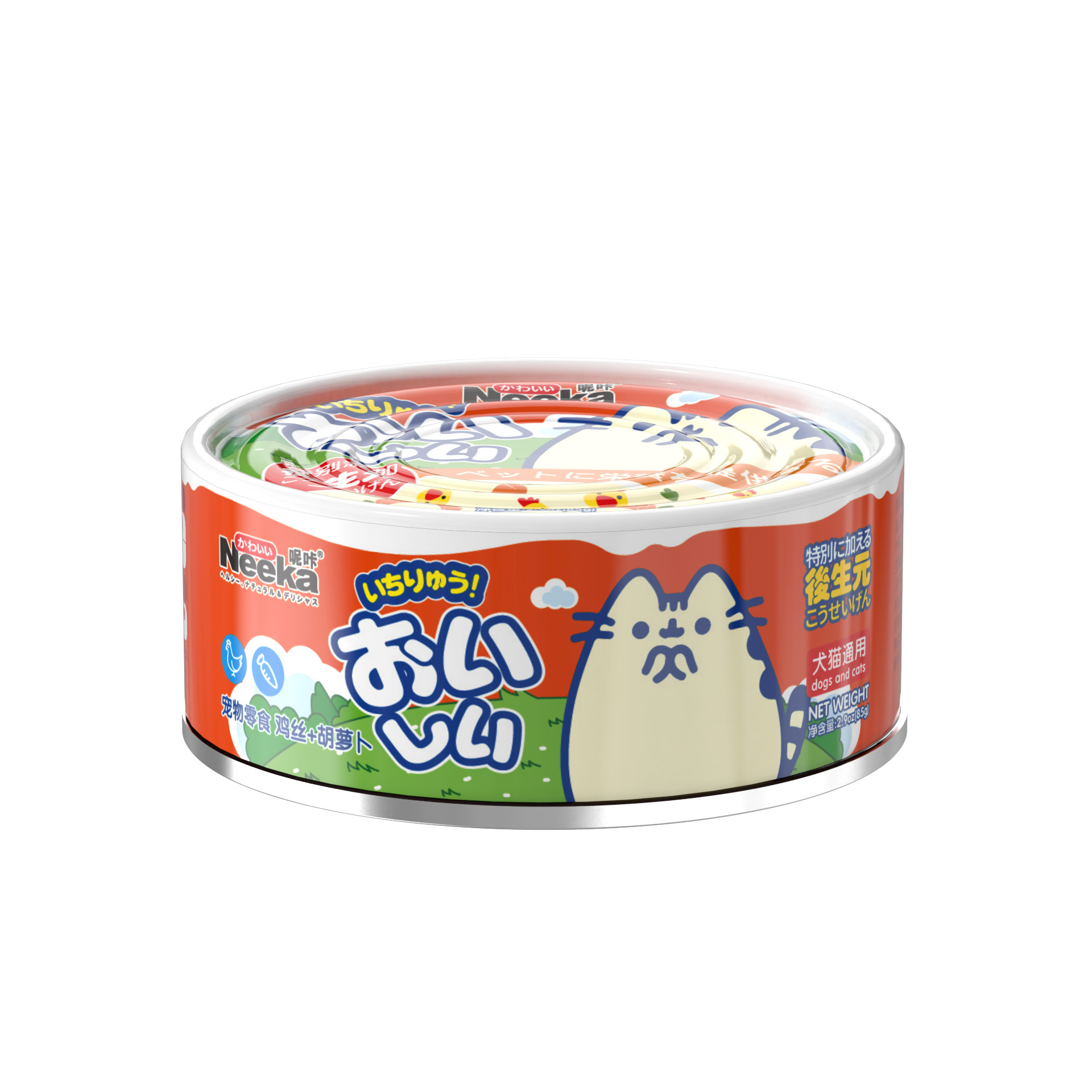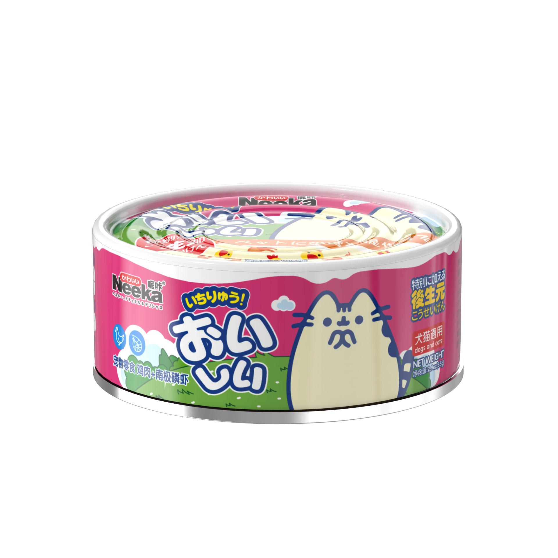 Тертая куриная тыква [для собак и кошек]; Тертая курица и морковь [для собак и кошек]; Мясо курицы и утки [общее для собак и кошек]; Измельченная папайя из курицы и утки [обычная для собак и кошек]; Консервированный тунец и кукуруза для кошек; Куриная кошачья трава [общая для собак и кошек]; Куриный антарктический криль [для собак и кошек]; Шинкованная курица с козьим молоком [для собак и кошек]
