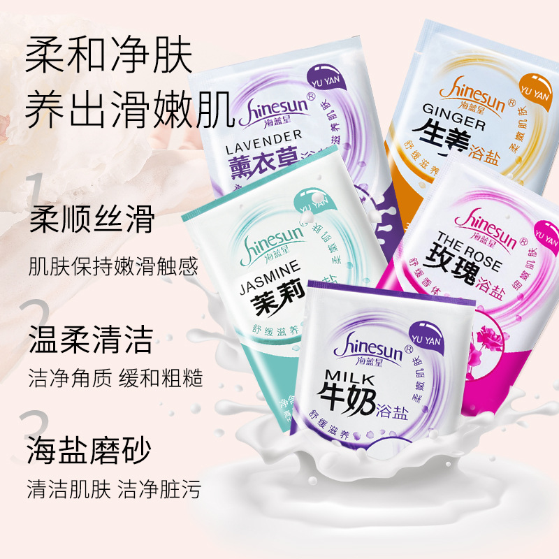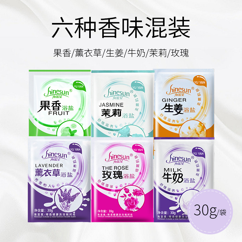 Молочная солевая ванна (1 пакет); Соль для ванны с розой (1 пакет); Соль для ванны с жасмином (1 пакетик); Имбирная солевая ванна (1 пакетик); Лавандовая соль для ванны (1 пакет); Фруктовая соль для ванн (1 пакетик); Пять видов смешанной солевой ванны (1 пакет); Шесть видов смешанной солевой ванны (1 пакет)