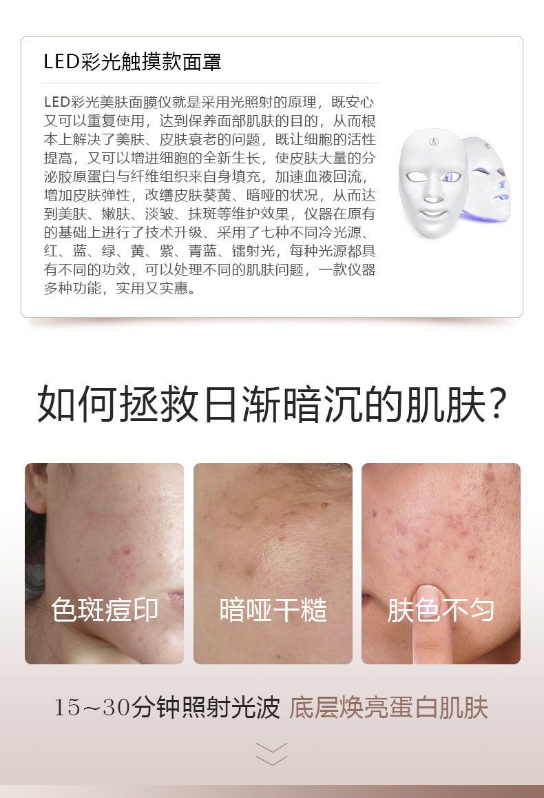 Трансграничный светодиодный семицветный цветной свет зарядка сенсорный экран красоты маска инструмент для омоложения кожи лица