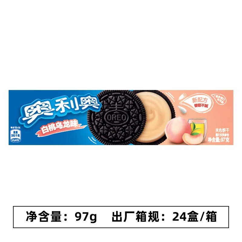 Печенье-сэндвич Oreo 97г (оригинальный вкус); Печенье сэндвич Oreo 97г (клубничный вкус); Печенье-сэндвич Oreo 97г (вкус шоколада); Печенье сэндвич Oreo 97г (с сыром); Печенье-сэндвич Oreo 97г (вкус торта на день рождения); Печенье сэндвич Oreo 97г (мороженое со вкусом матча); Печенье сэндвич Oreo 97г (с ароматом белого персика и улуна); Печенье-сэндвич Oreo 97г (вкус малины + вкус черники); Печенье-сэндвич Oreo 97г (аромат хрустального винограда + аромат персика)