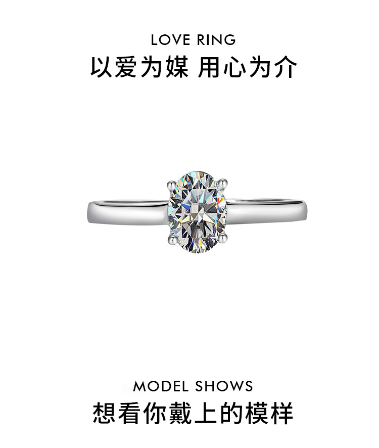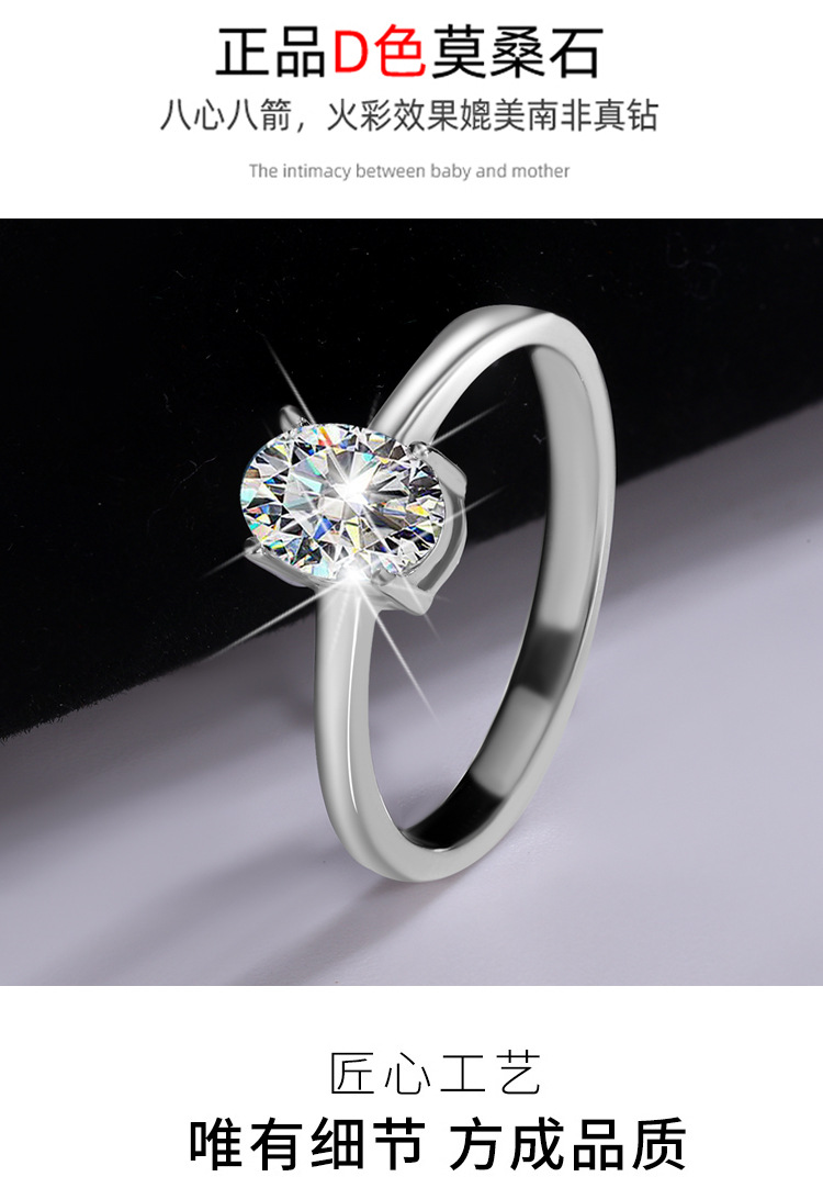 Трансграничный S925 Серебряный один карат D-цвета Мозамбик голубь яйцо кольцо в форме алмаза