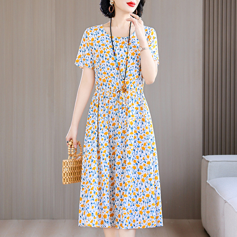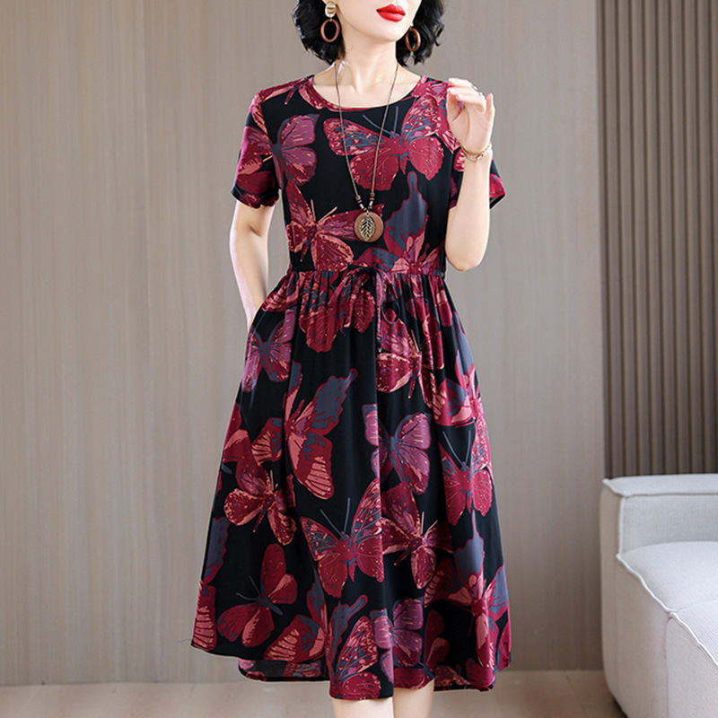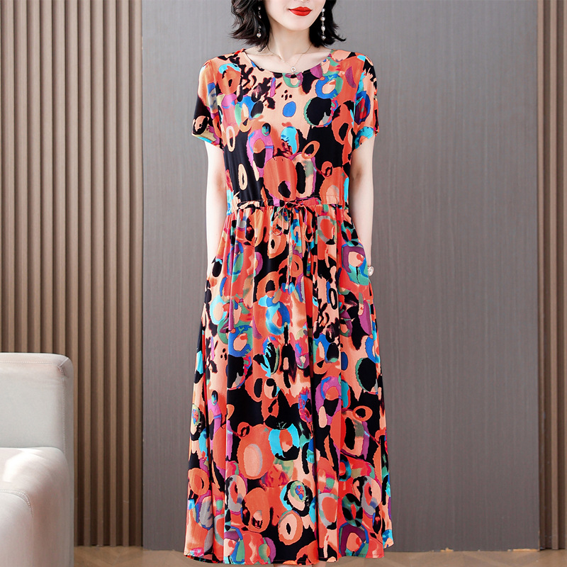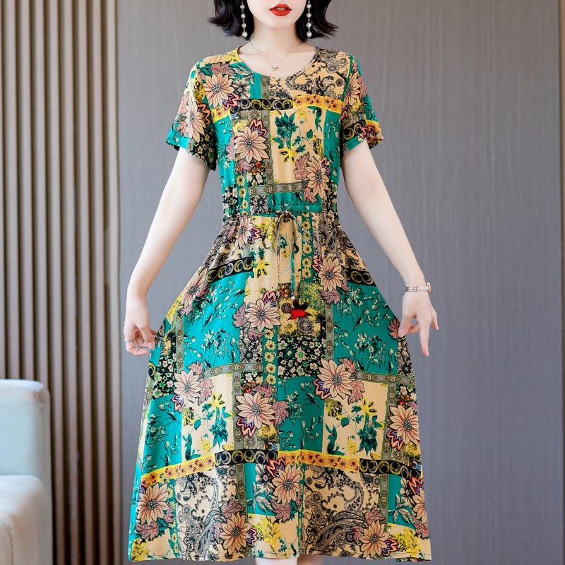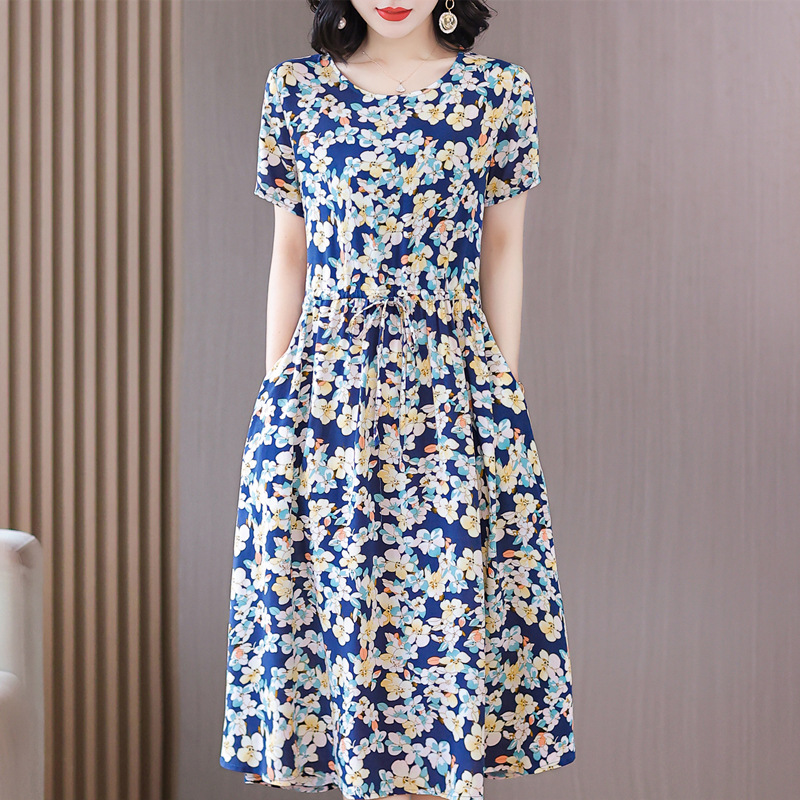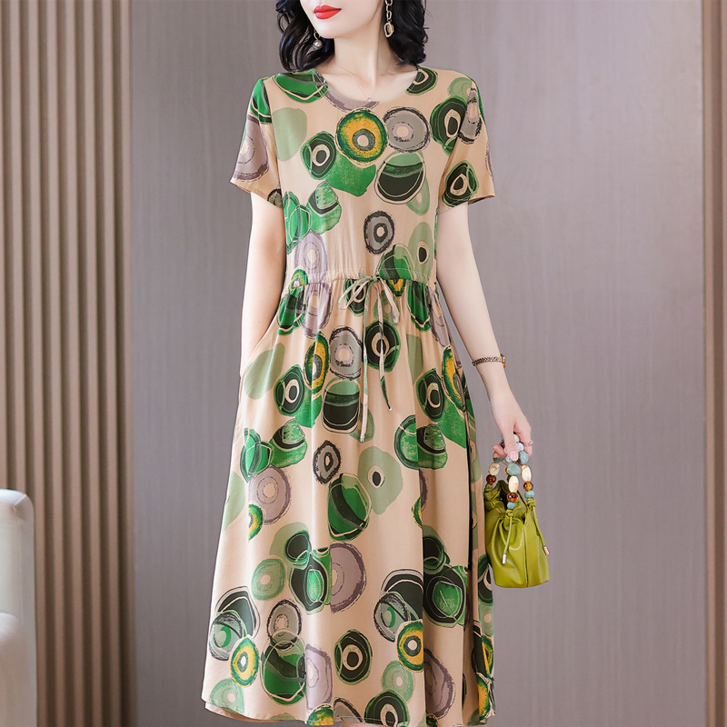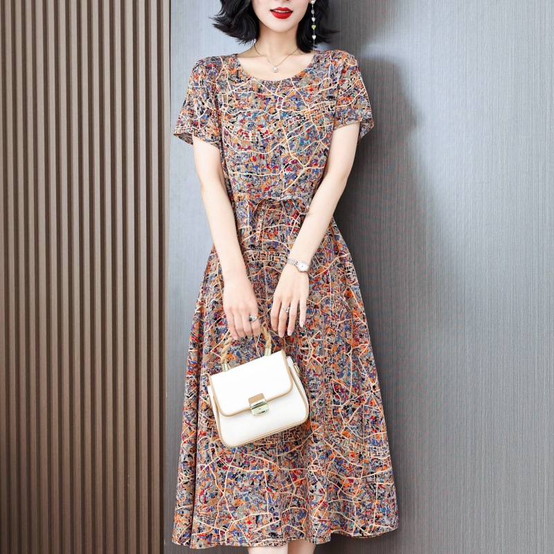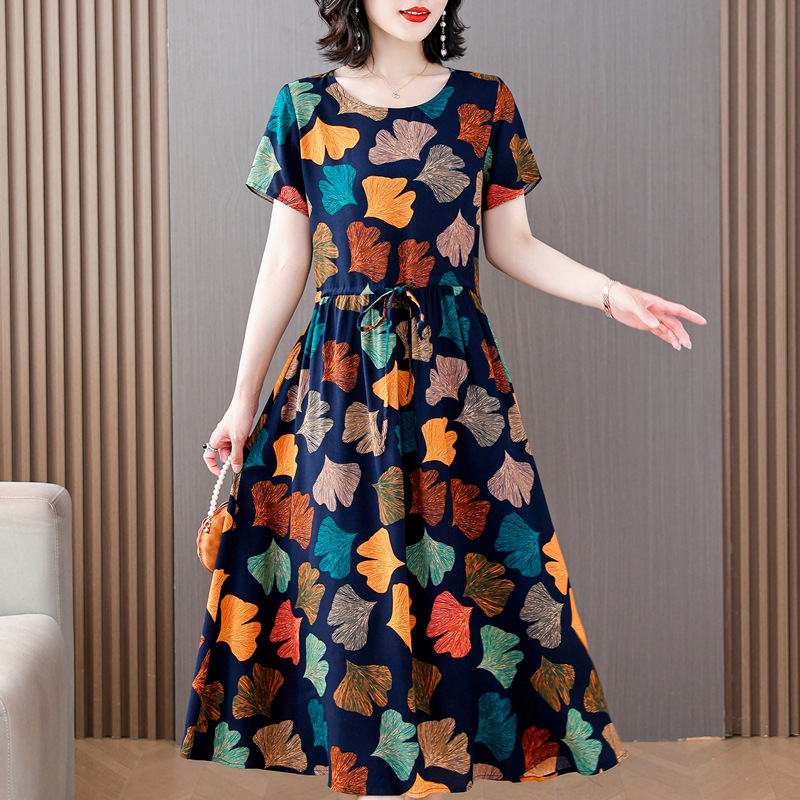 Платье из хлопкового шелка для женщин среднего и пожилого возраста 40-50 лет